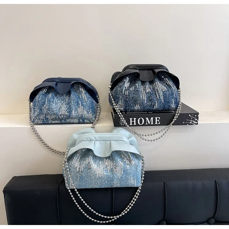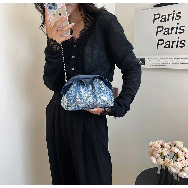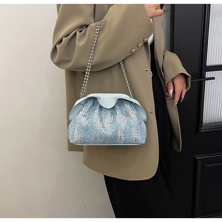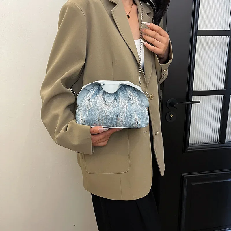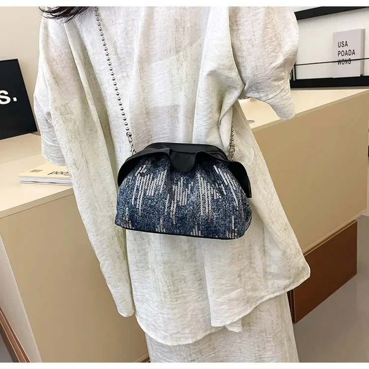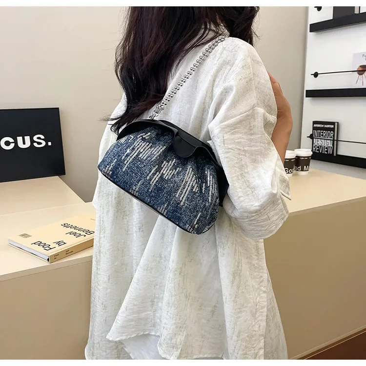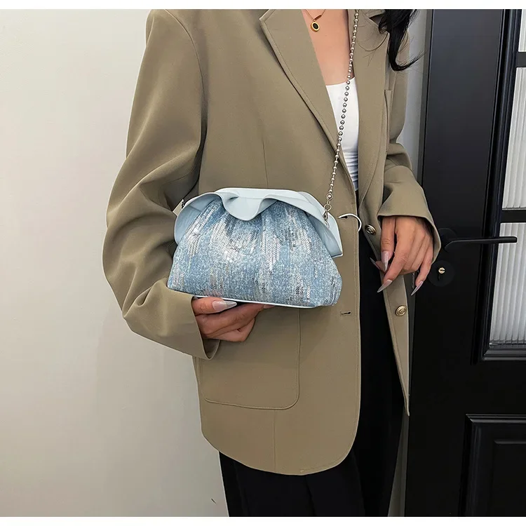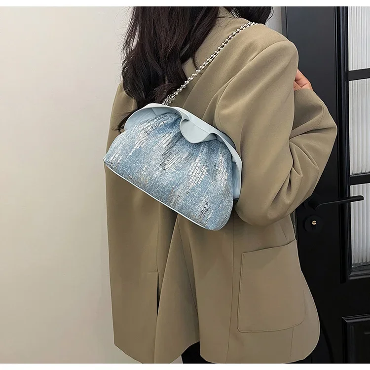 Bucket Bag 2024 New Fashion Chain Shoulder Bag High Beauty Handbag with sequins Women's Bag