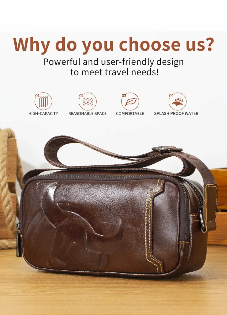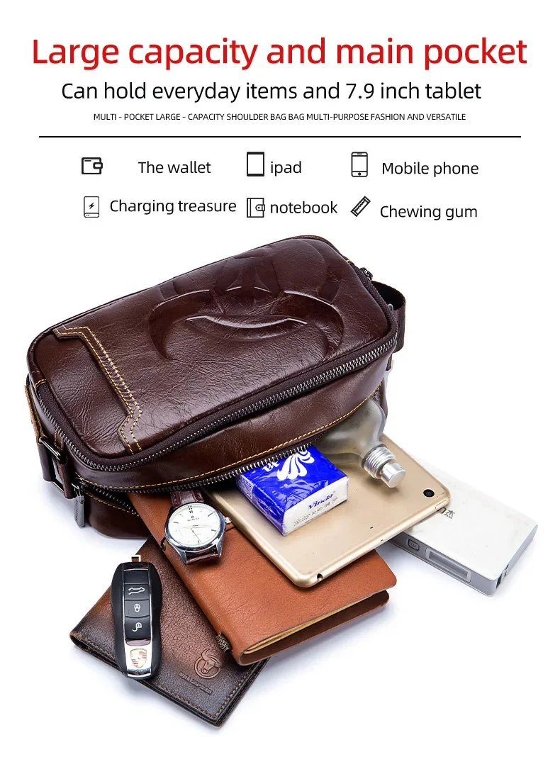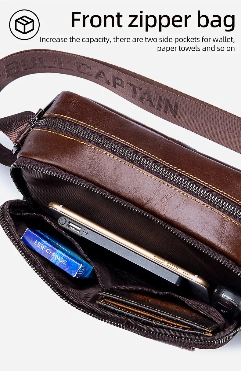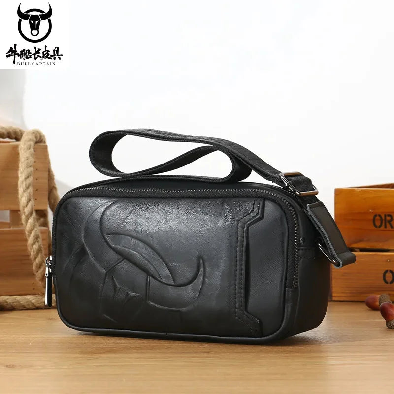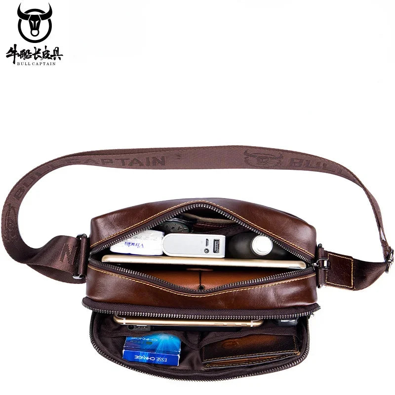 BULLCAPTAIN Men's Genuine Leather Business Leisure Crossbody Bag Multi Functional Horizontal Shoulder Small Satchel