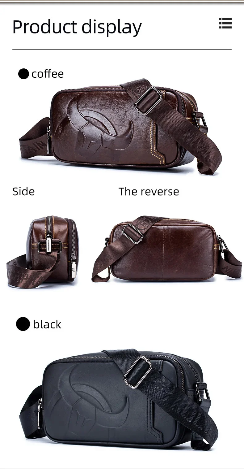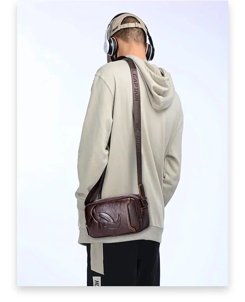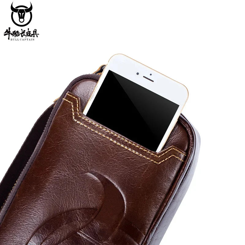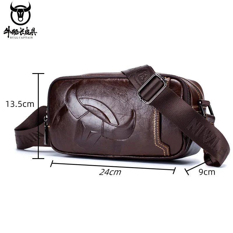 BULLCAPTAIN New Men's Genuine Leather Chest Bag Fashion Shoulder Bag Leisure Crossbody Bag Short-distance Travel Bag Men's Bag