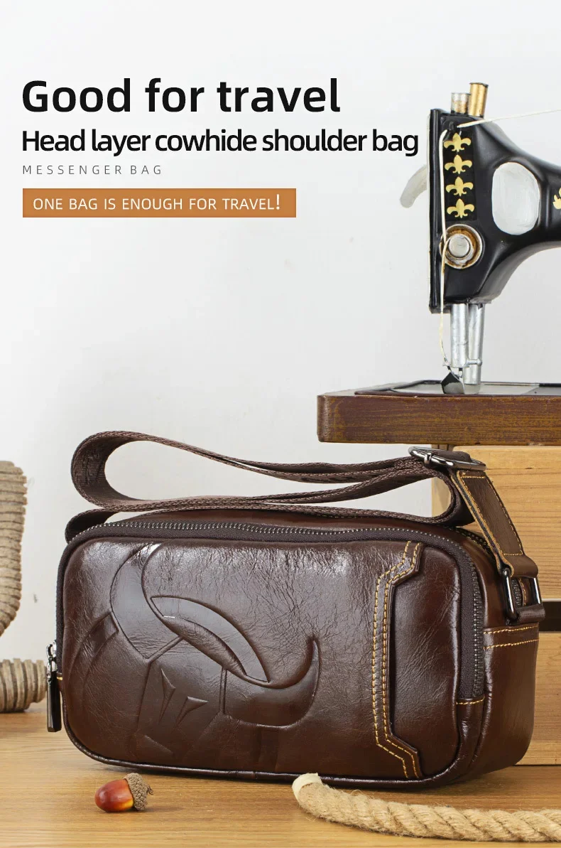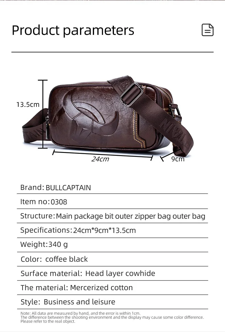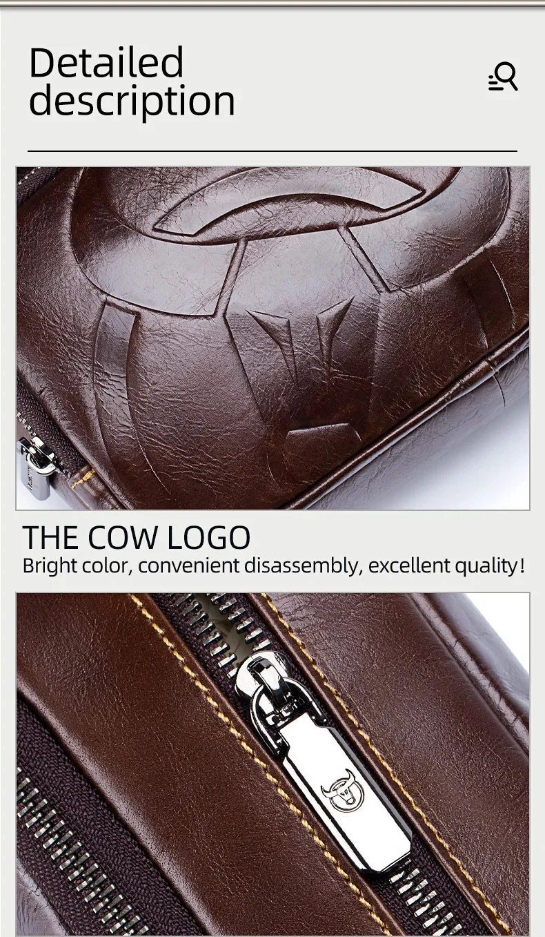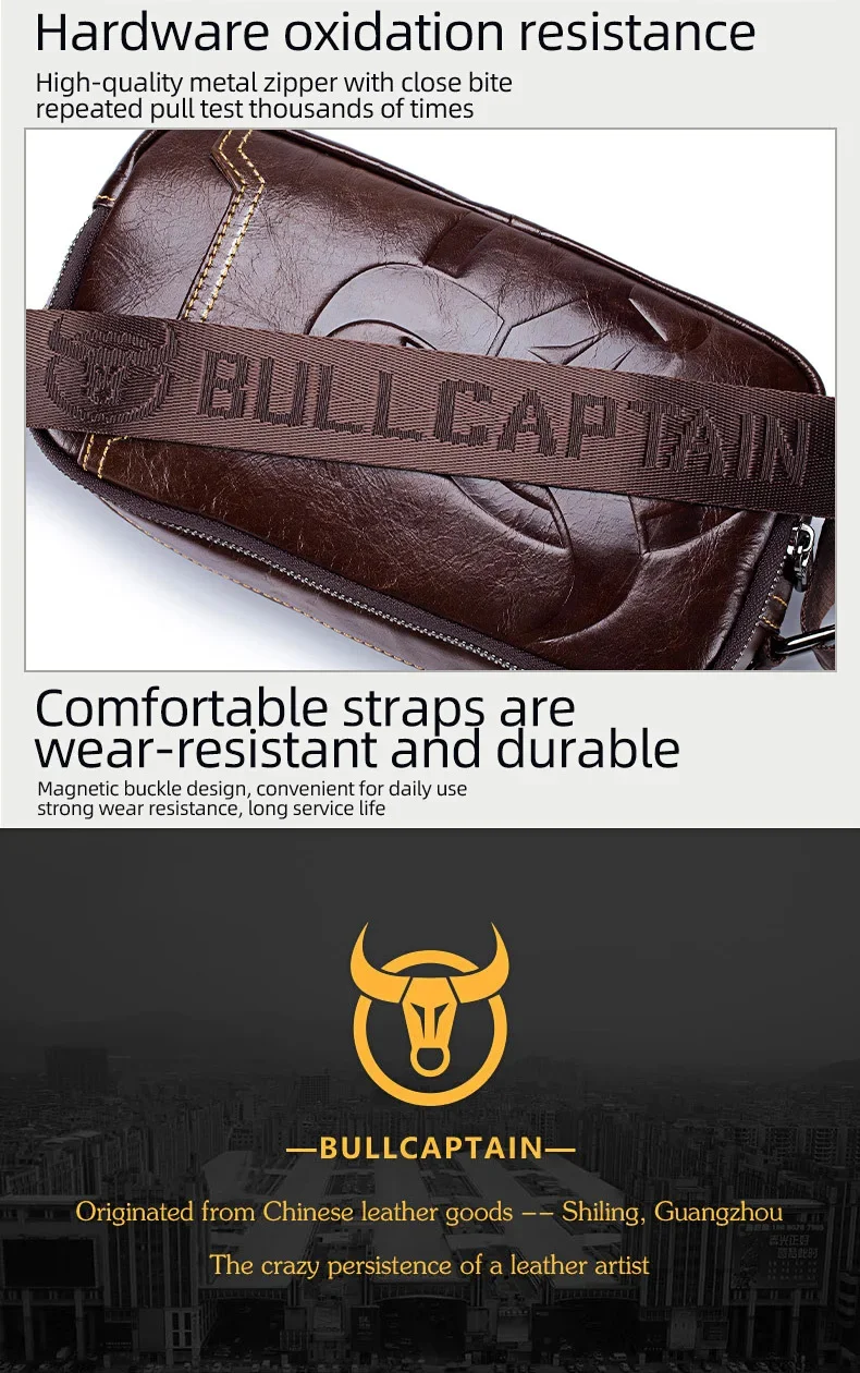 BULLCAPTAIN New Men's Genuine Leather Chest Bag Fashion Shoulder Bag Leisure Crossbody Bag Short-distance Travel Bag Men's Bag