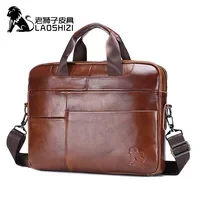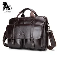 LAOSHIZI Brand Men's Genuine Leather Briefcase Messenger Bag Laptop Bag Business Leisure Large-capacity Handbag Crossbody Bag