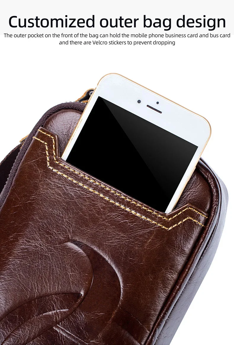LAOSHIZI Men's Genuine Leather Waist Packs Multifunction Fashion Leather Chest Bag Sports Casual Leather Travel Pocket Phone Bag
