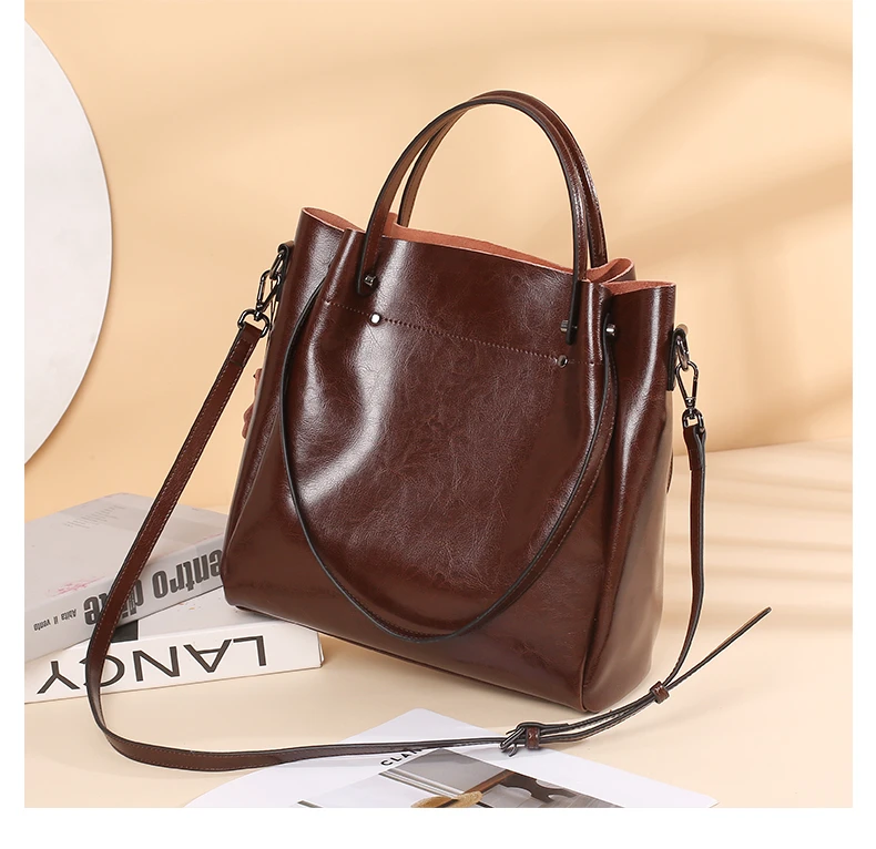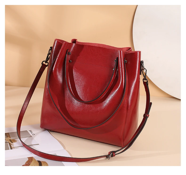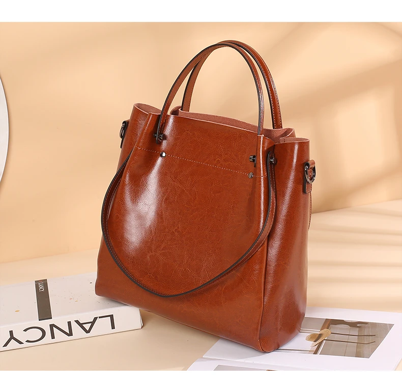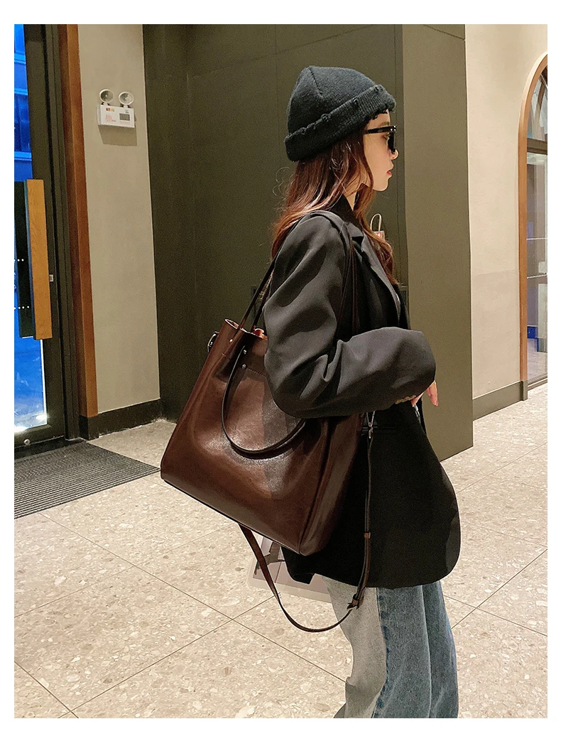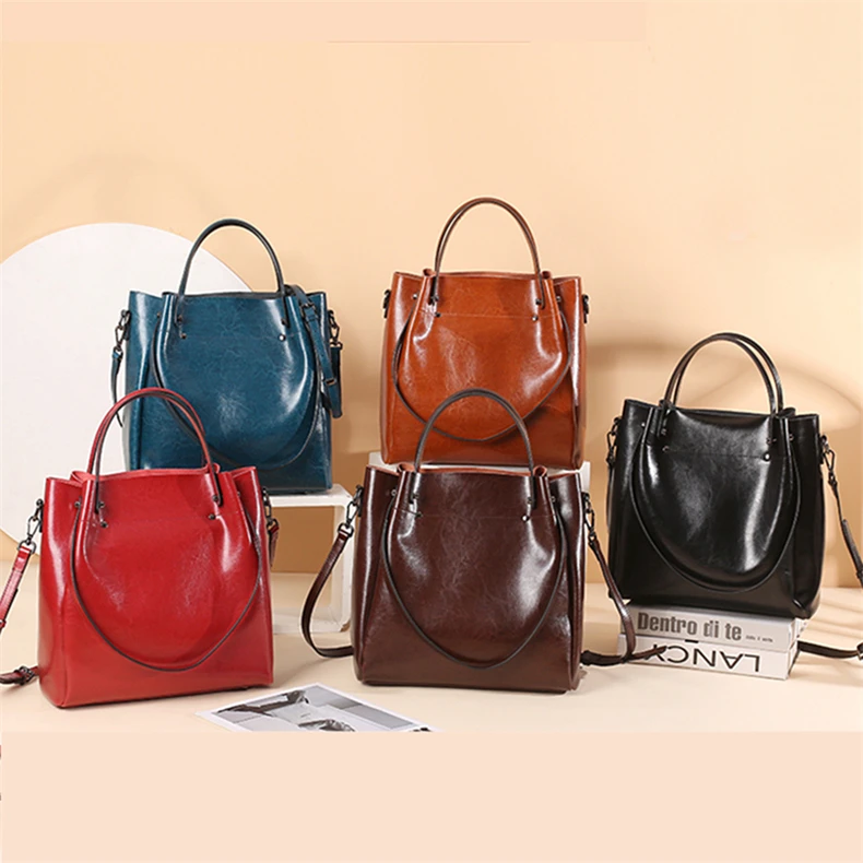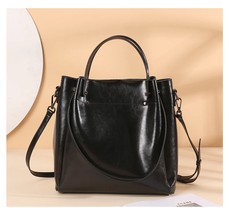 Burminsa Cowhide Genuine Leather Bucket Tote Handbags For Women 2024 Trend Designer Top Handle Ladies Shoulder Crossbody Bags