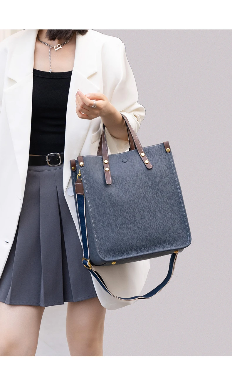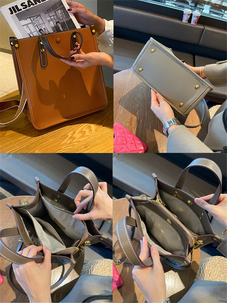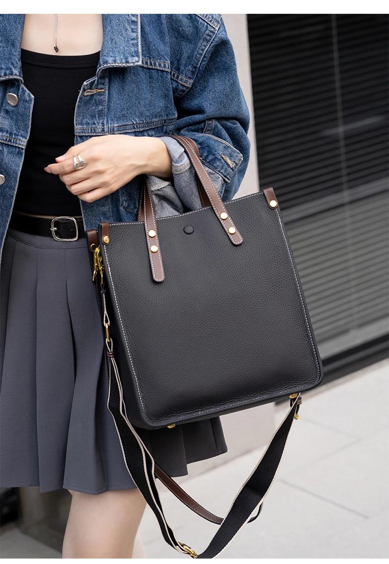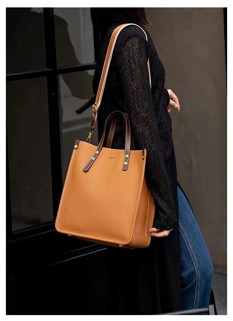 Burminsa Genuine Leather Vertical Tote Handbags For Women 2024 Trend Designer Large Capacity Work Ladies Shoulder Crossbody Bags