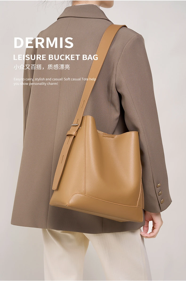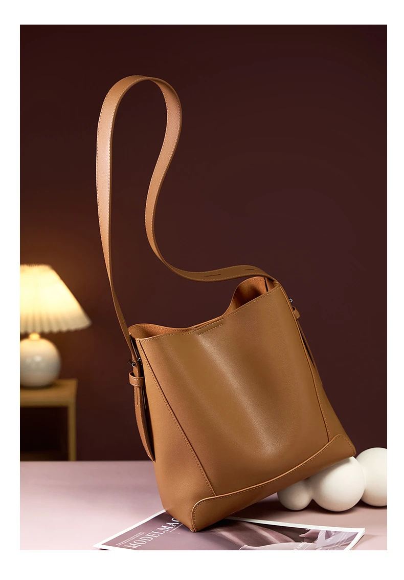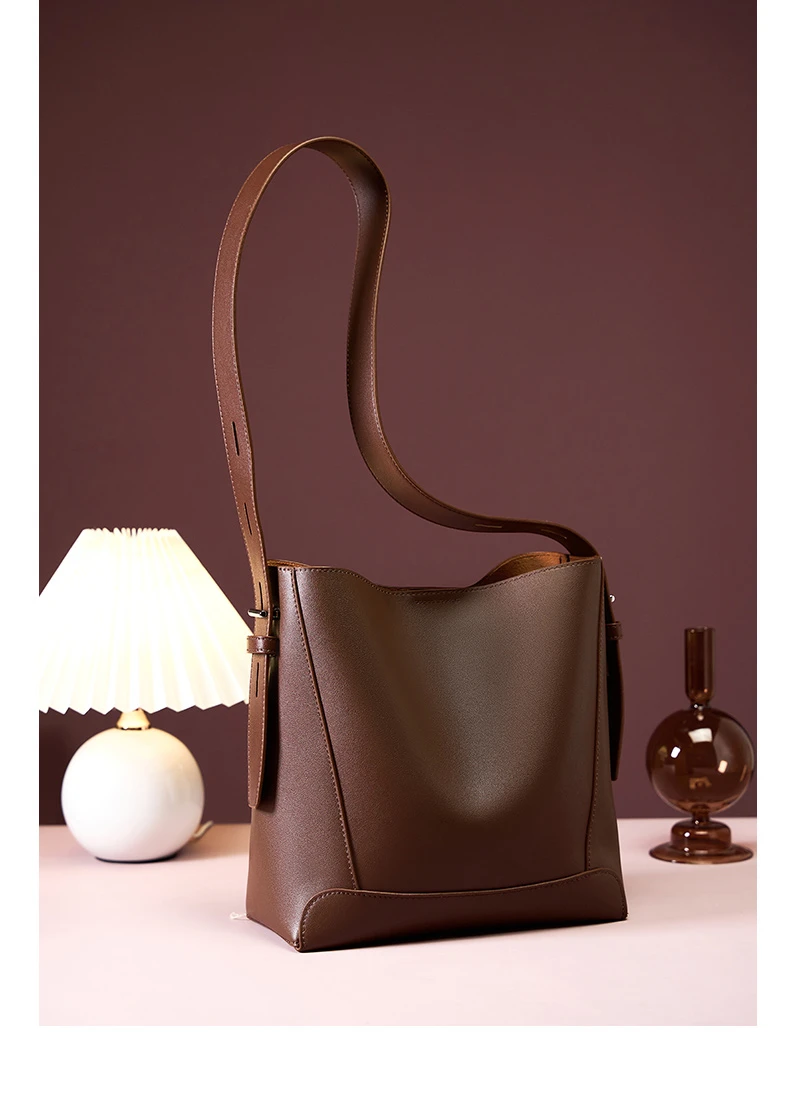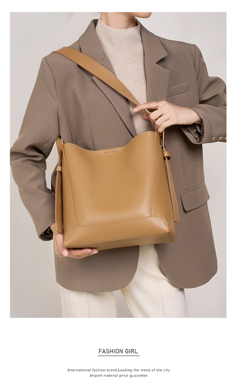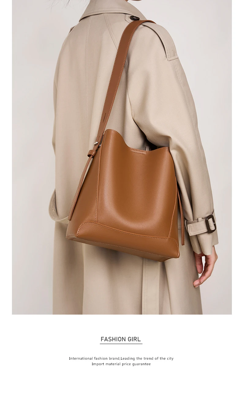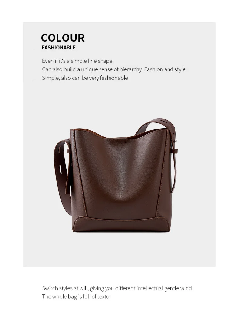 Burminsa Vintage Genuine Leather Bucket Shoulder Bags For Women New 2024 Trend Designer Large Capacity Crossbody Ladies Handbags