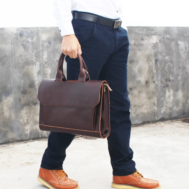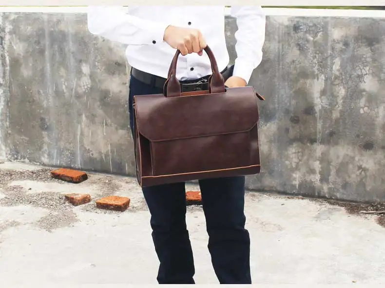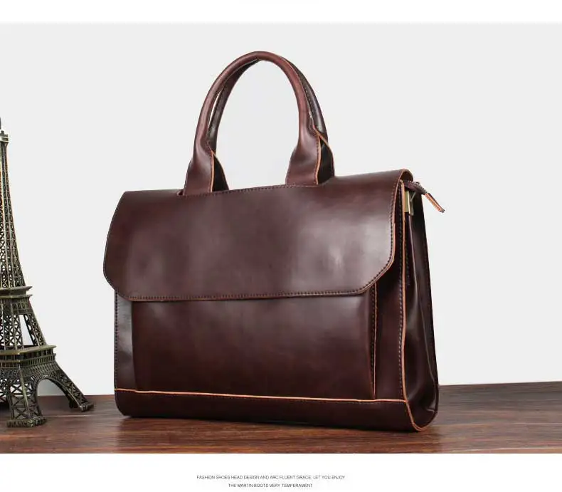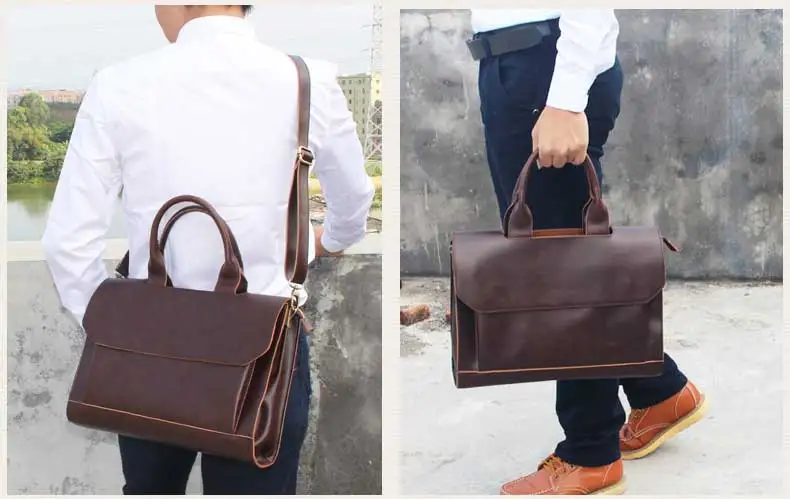 Business Casual Briefcase For Men And Women Handbag 13.3 Inch Laptop Bag Shoulder Cross Bag Crazy Horse Pu Leather Messenger Bag