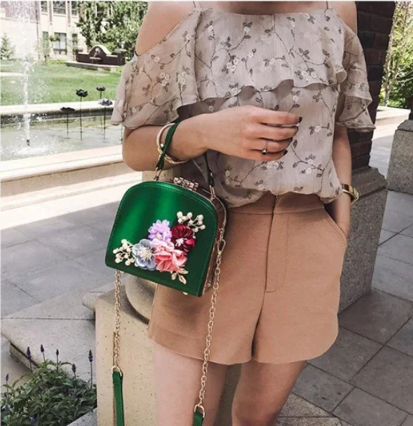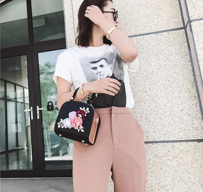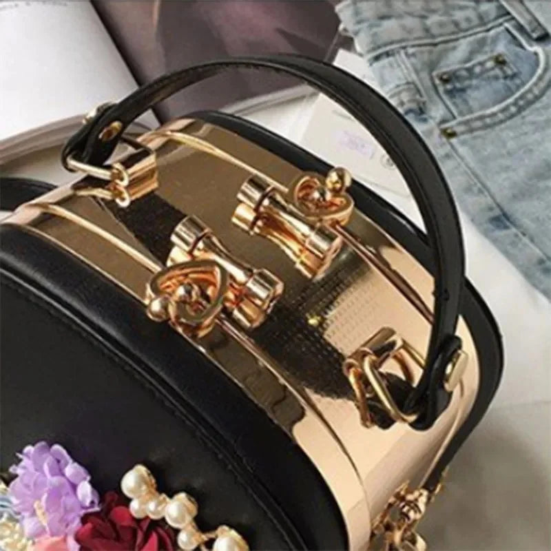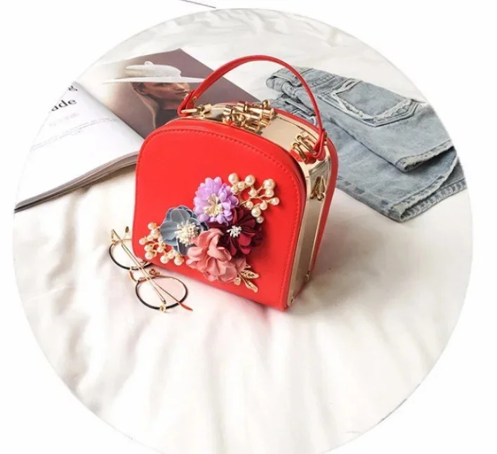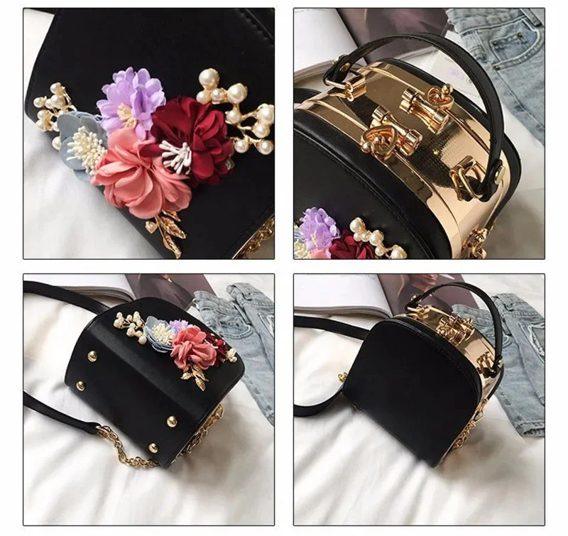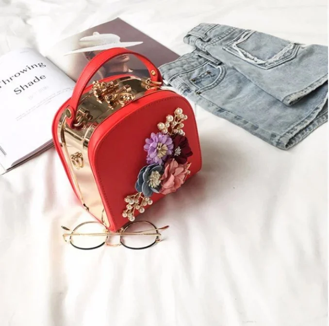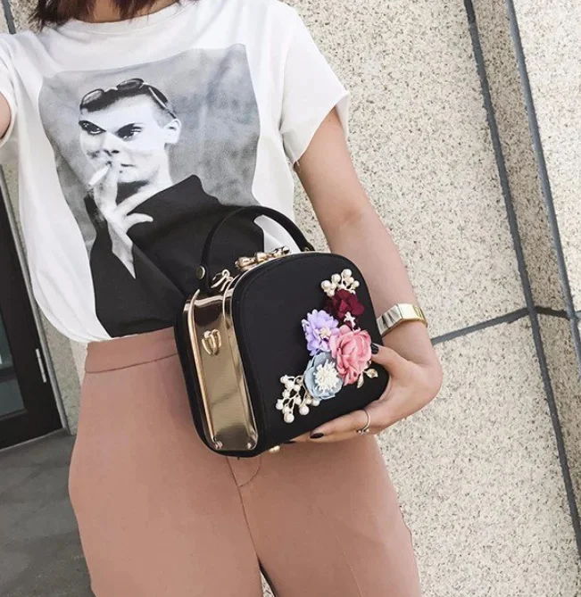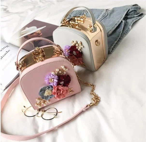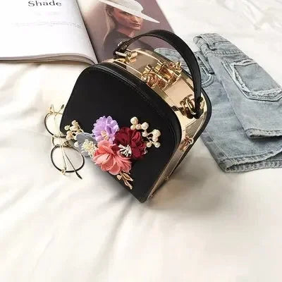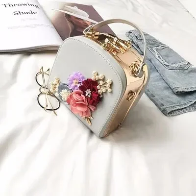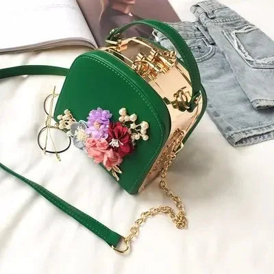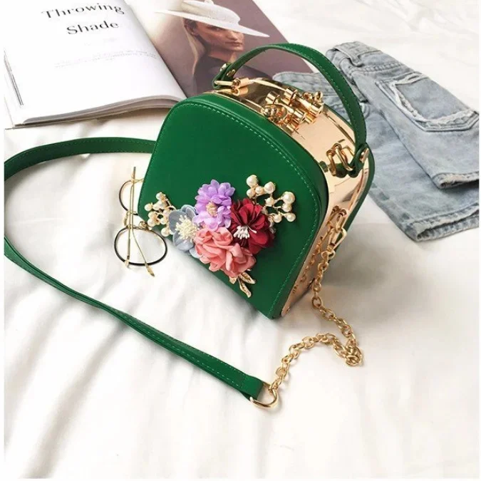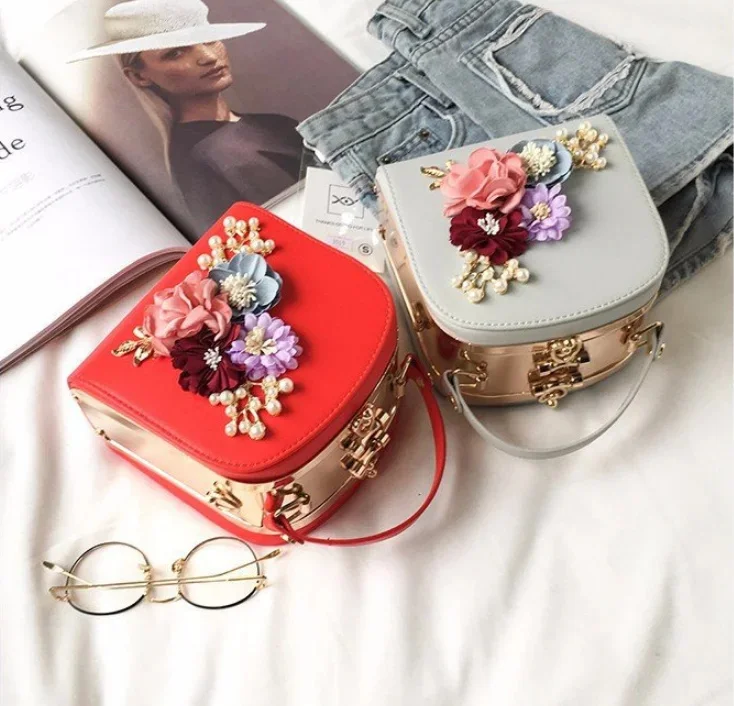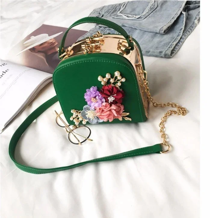 Camera Diagonal Handbag s Shoulder s Metal Clip Small Square Bag New Fashion Dinner Flower 2024