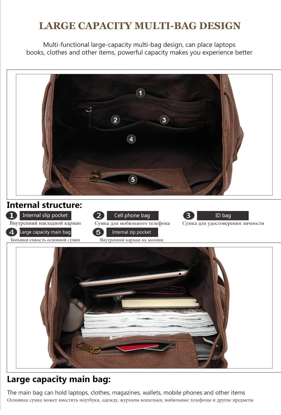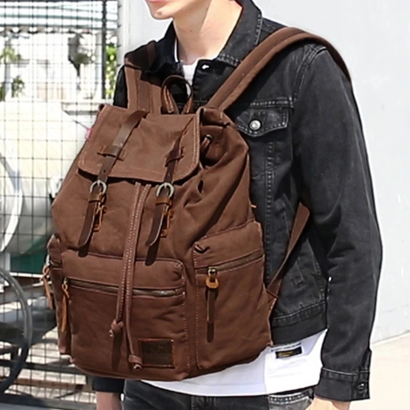 Canvas Retro Men's Bag Backpack Suitable 14 Inch Laptop Backpack Vintage 36-55L Wear-resistant Backpack Coffee Dripshipping