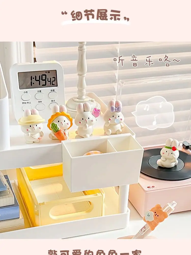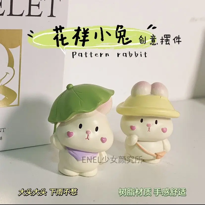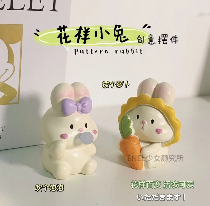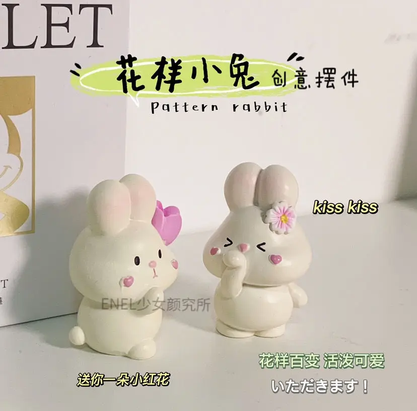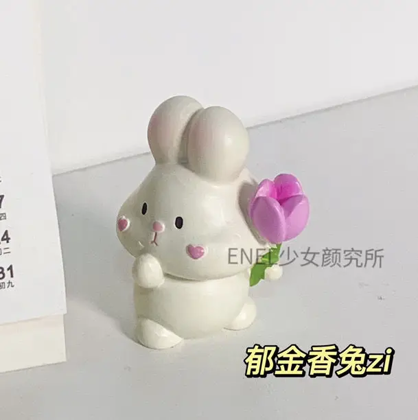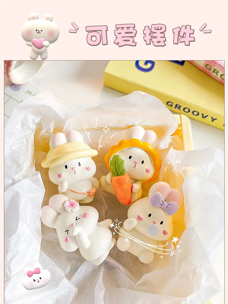 Cartoon Cute Resin Rabbit Car Ornaments Micro Landscape Bonsai Decoration Desktop Creative Trinket Home Accessories Figurines