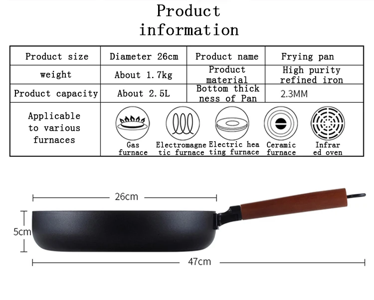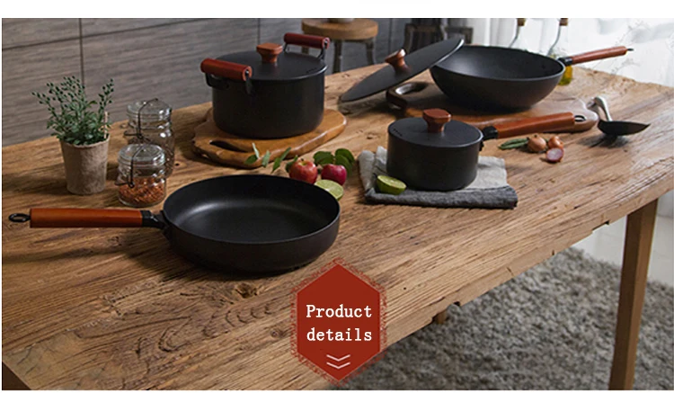 Cast Iron Pot Vintage Forged Chinese Wok Non-stick Frying Pan Home 26CM Kitchen Wok Cooking Pot for Induction Cooker Gas Stove