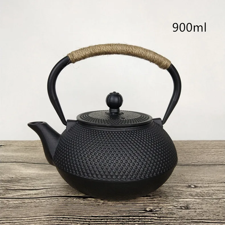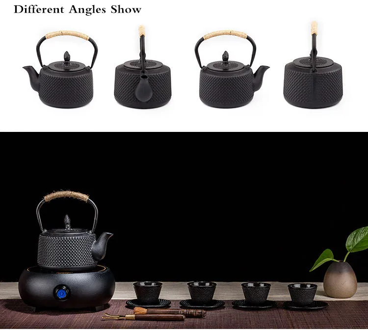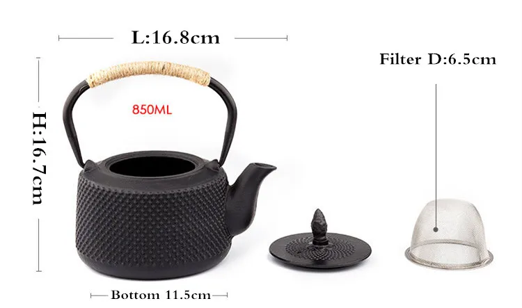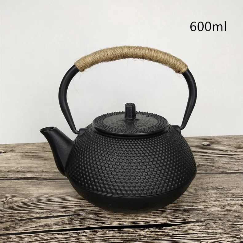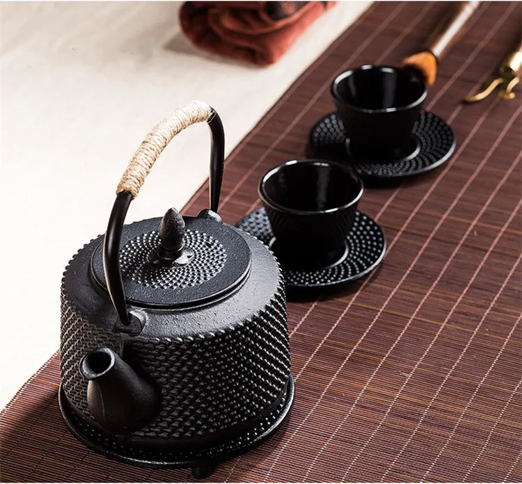 Cast Iron Teapot Water Boiling Kettle Household Tea Making Set 850ml Japanese Tetsubin Iron Bottle Vintage Tea Cup Saucer Set
