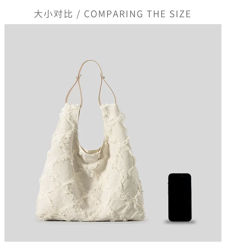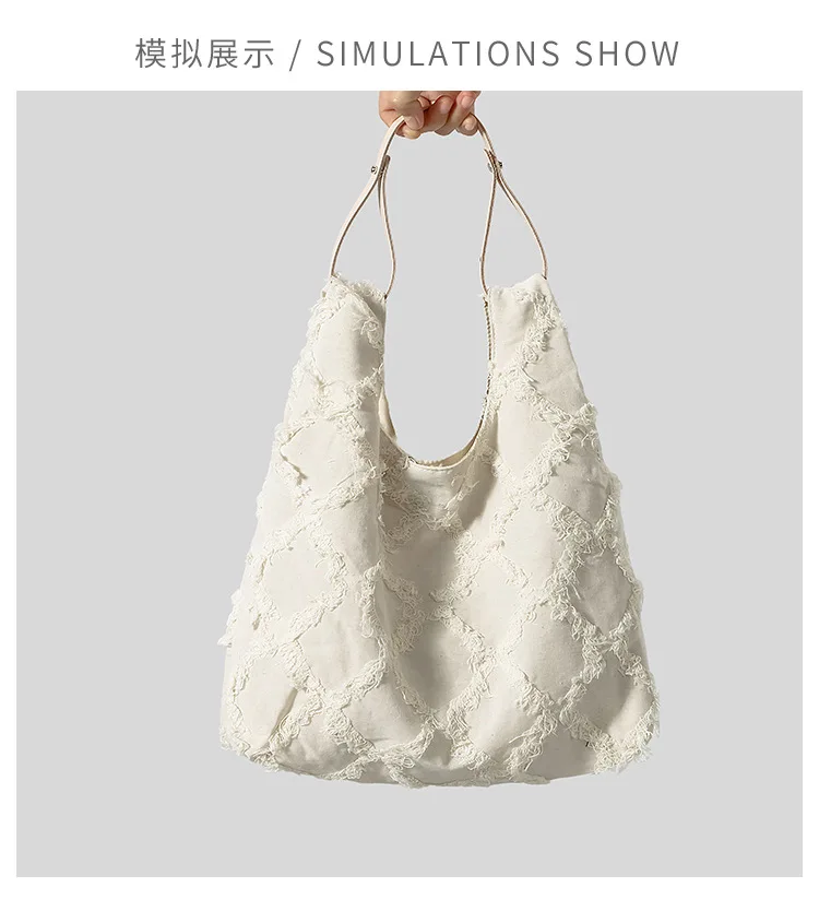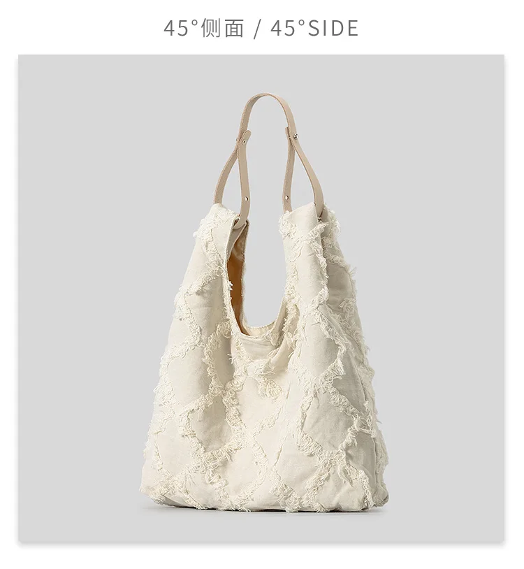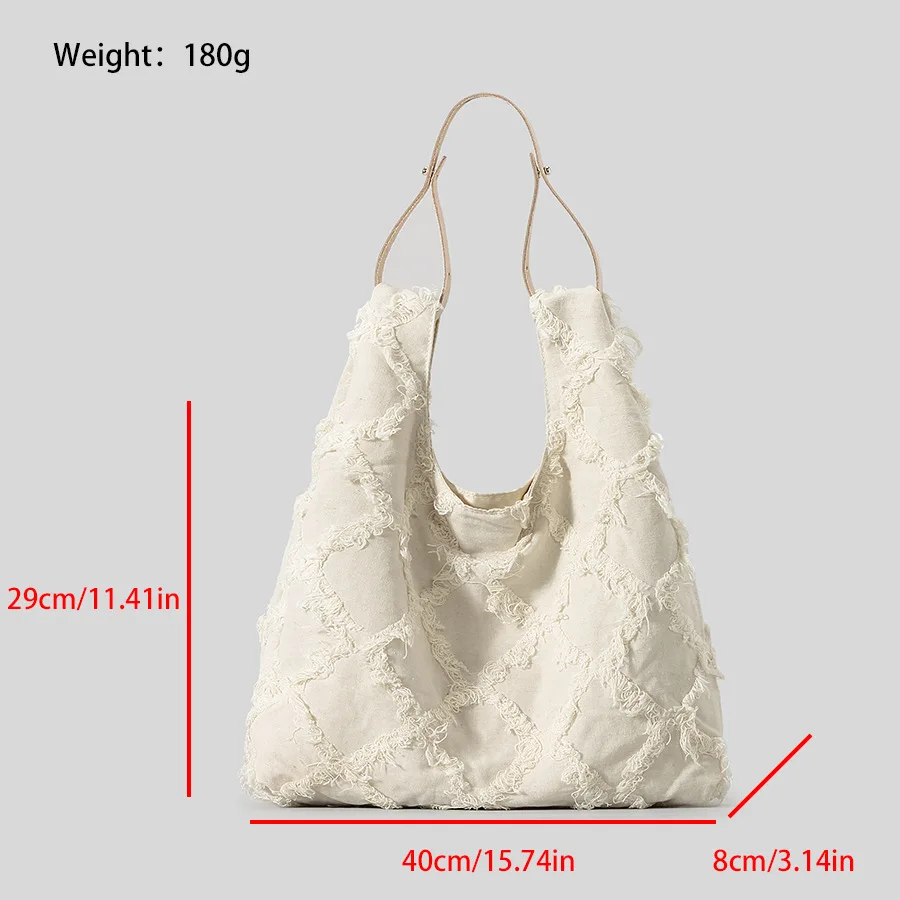 Casual Fringe Canvas Tote Bag Designer Women Shoulder Bags Large Capacity Handbags Simple Big Shopper Purses 2024 Summer Beach