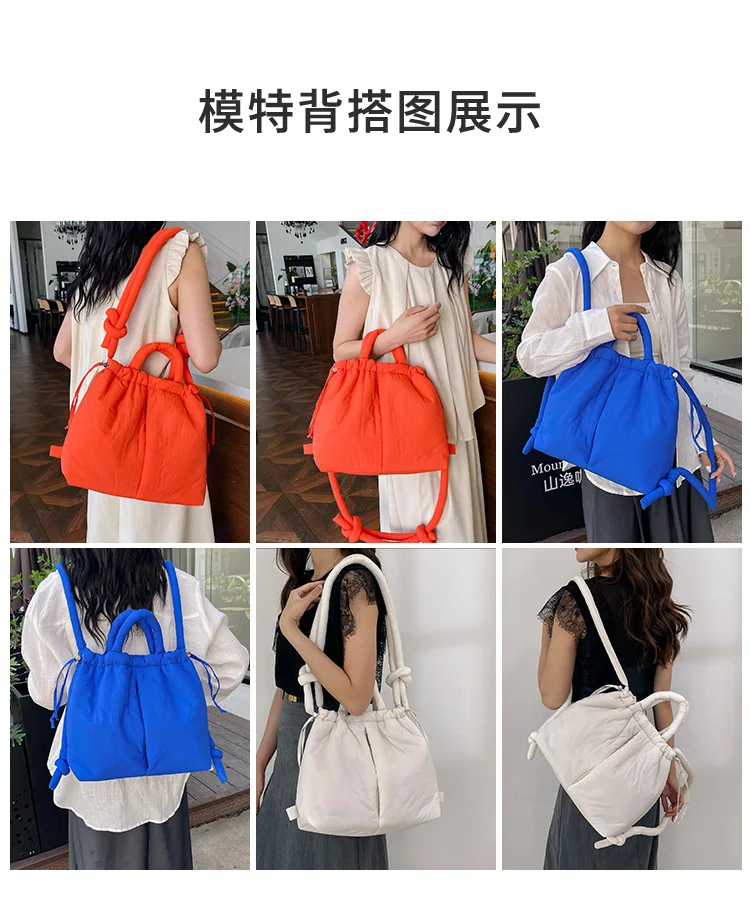 Casual nylon padded tote bag designer soft puffer women shoulder crossbody bags Simple Vintage large capacity handbags 2023