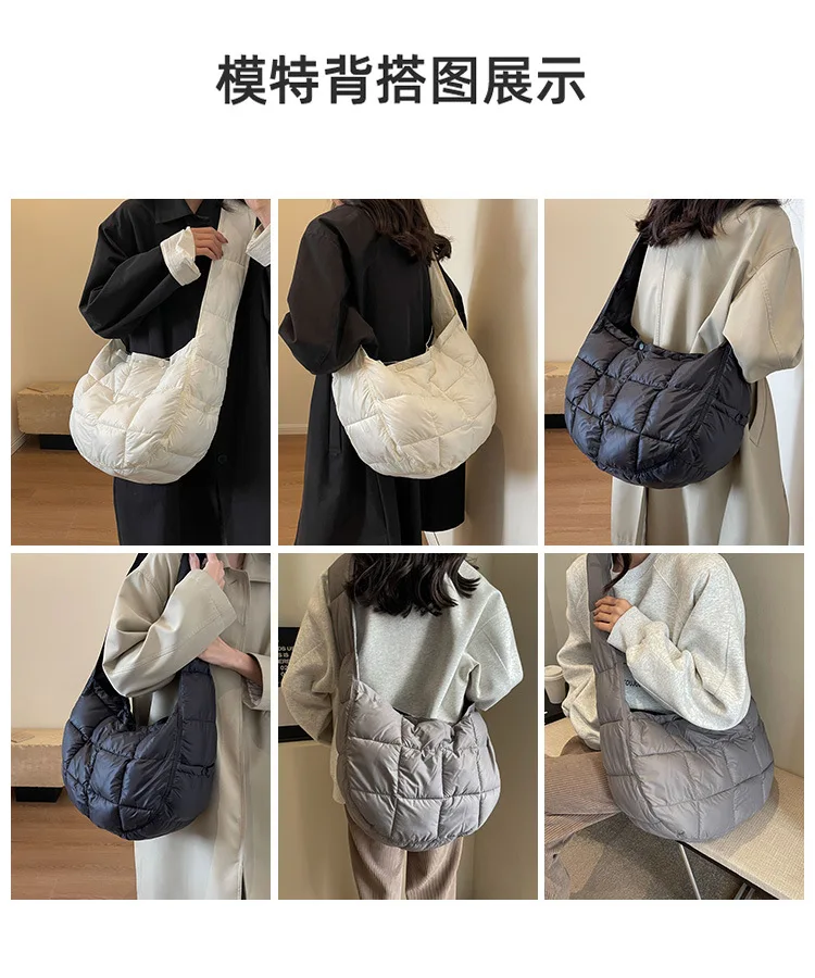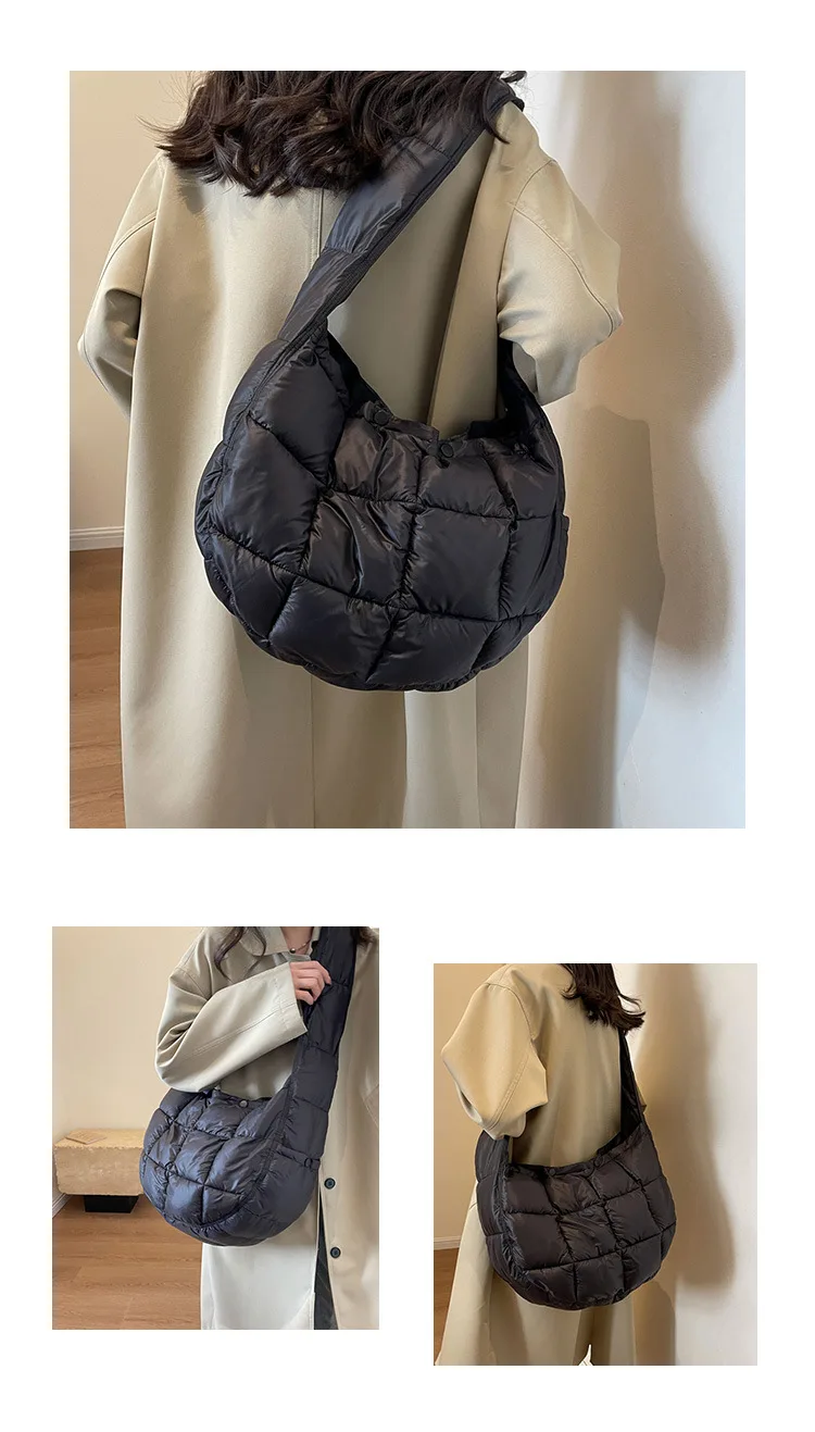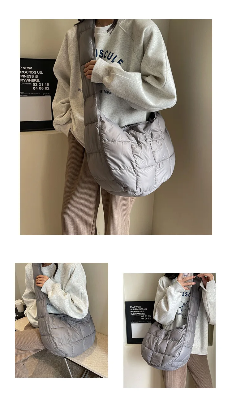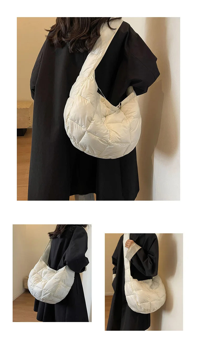 Casual Quilted Padded Crossbody Bag for Women Soft Nylon Down Cotton Wide Strap Shoulder Bags Large Capacity Hobos Puffer Bag