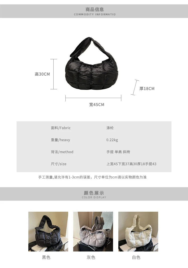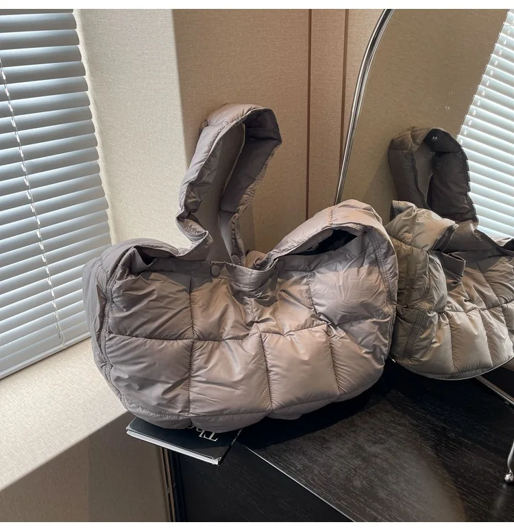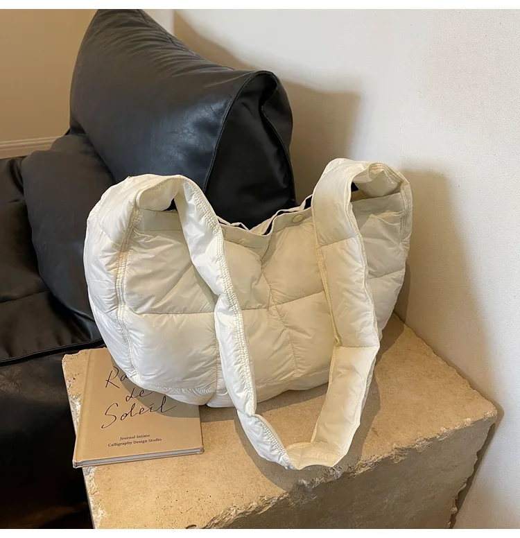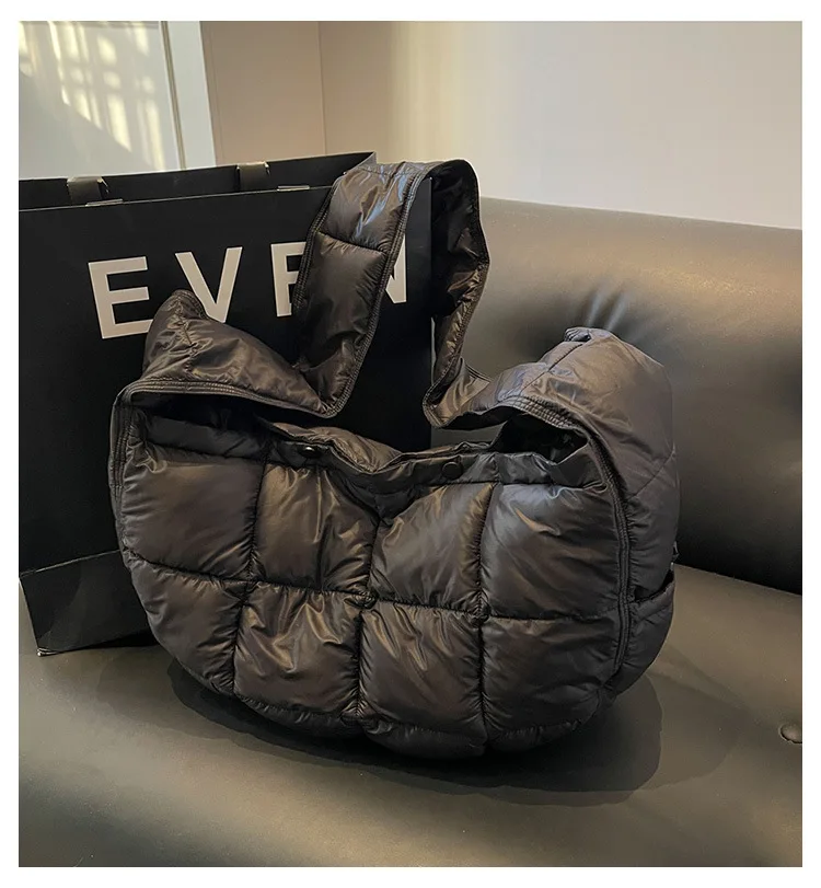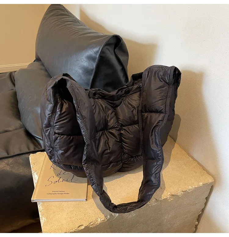 Casual Quilted Padded Crossbody Bag for Women Soft Nylon Down Cotton Wide Strap Shoulder Bags Large Capacity Hobos Puffer Bag