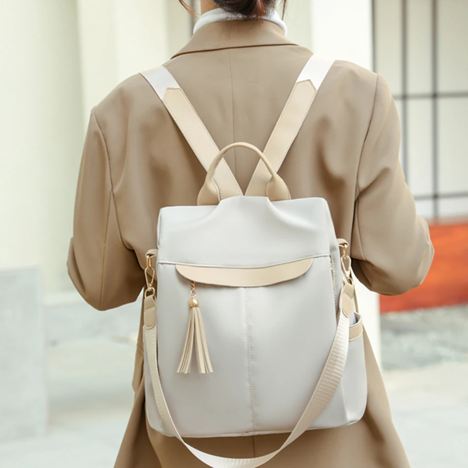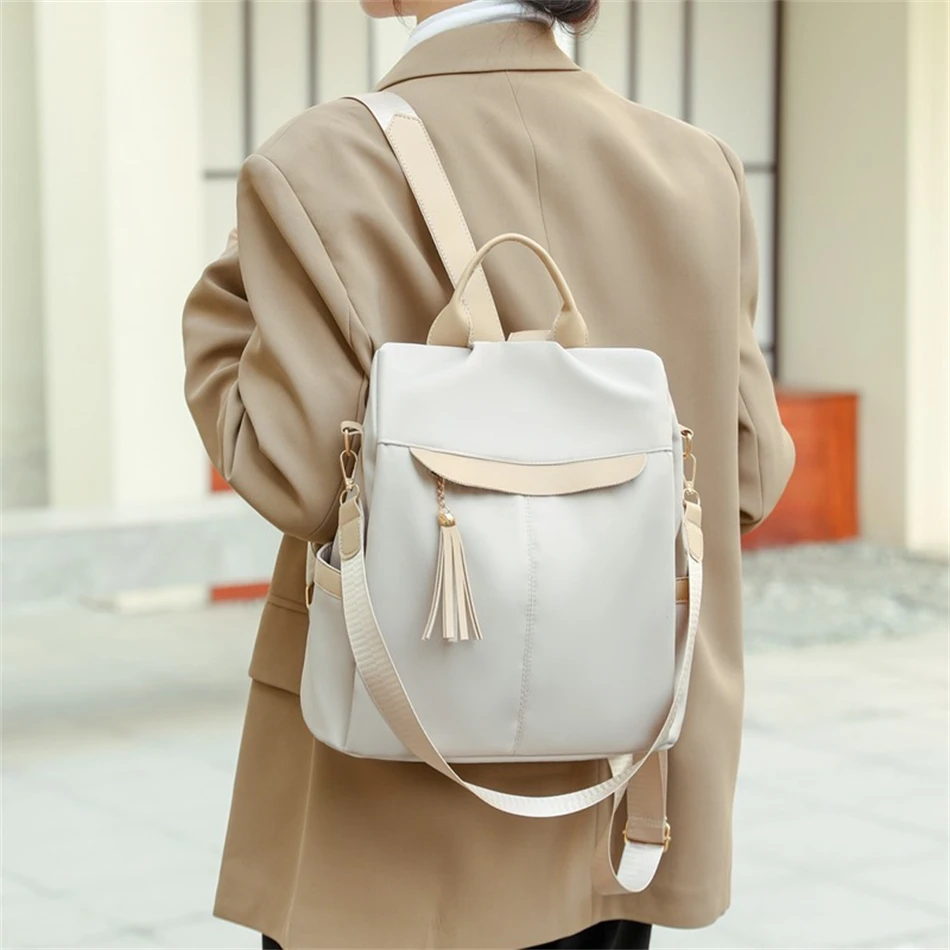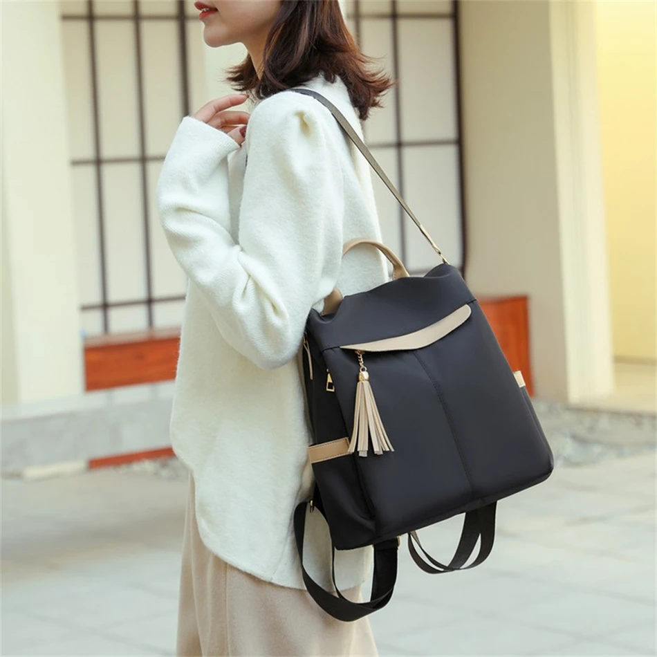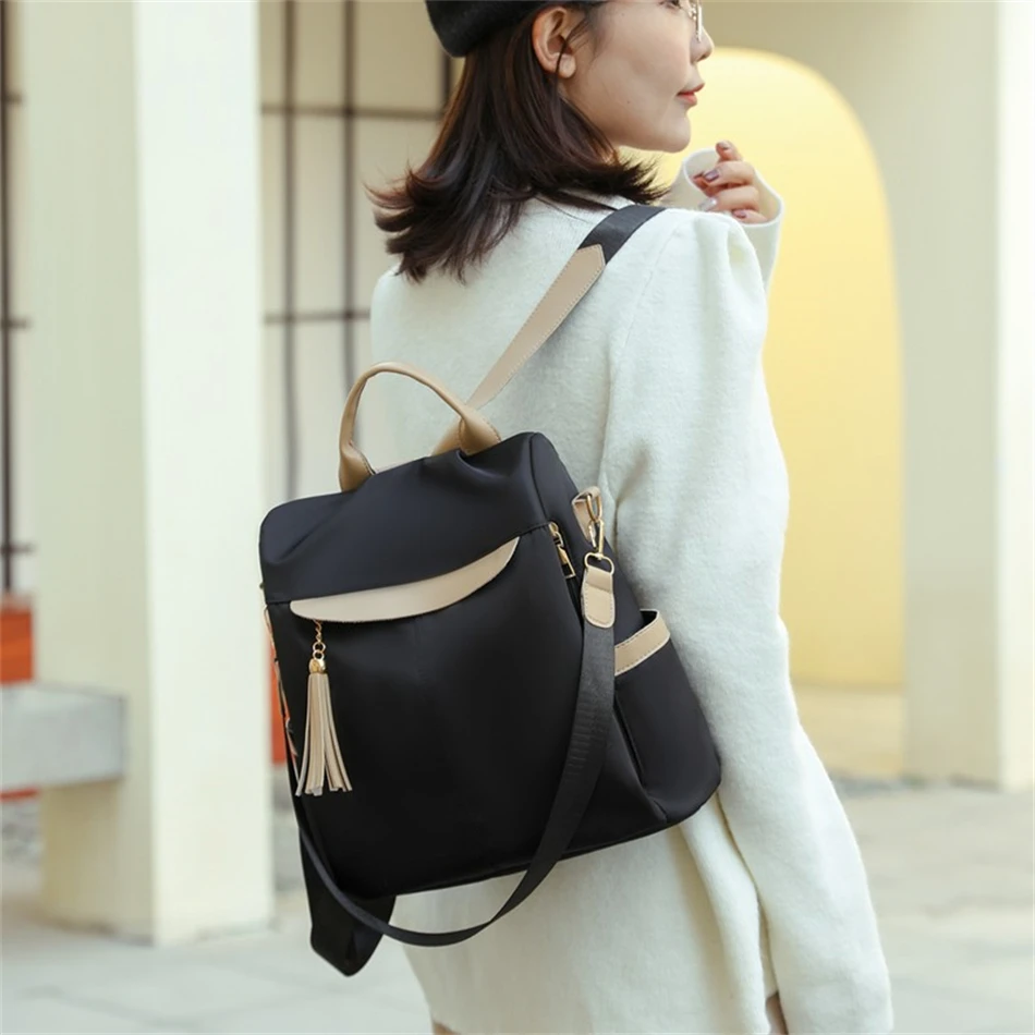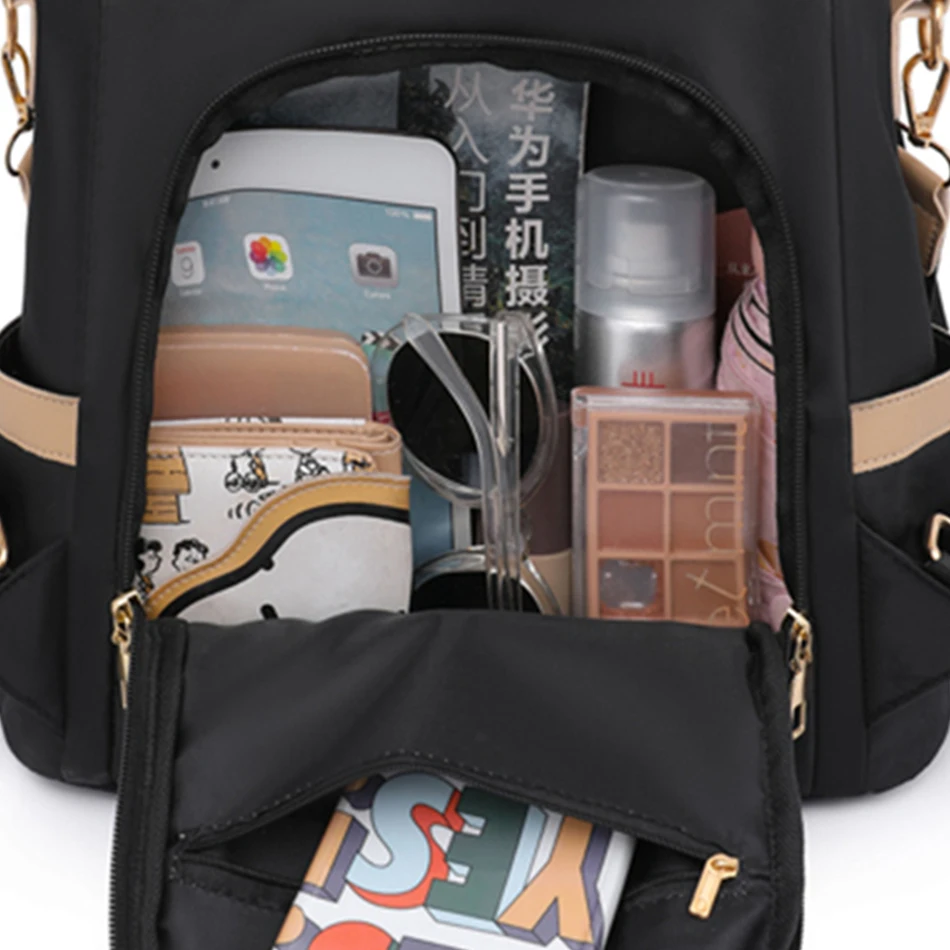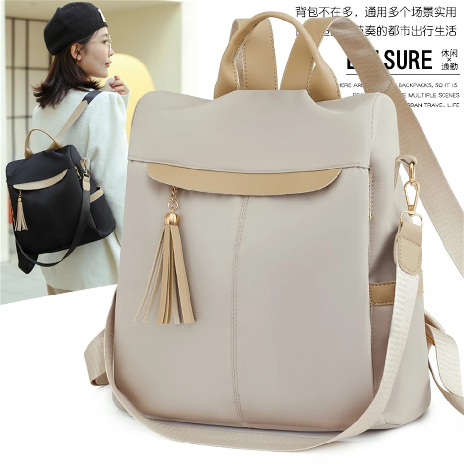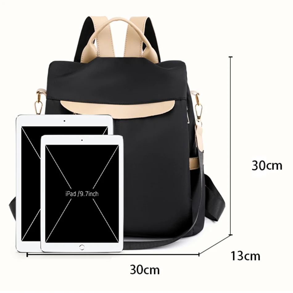 Casual Simple Style Women Multifunctional Anti-theft Backpack Large Capacity Nylon Shoulder Bag Travel Knapsack School Bookbag