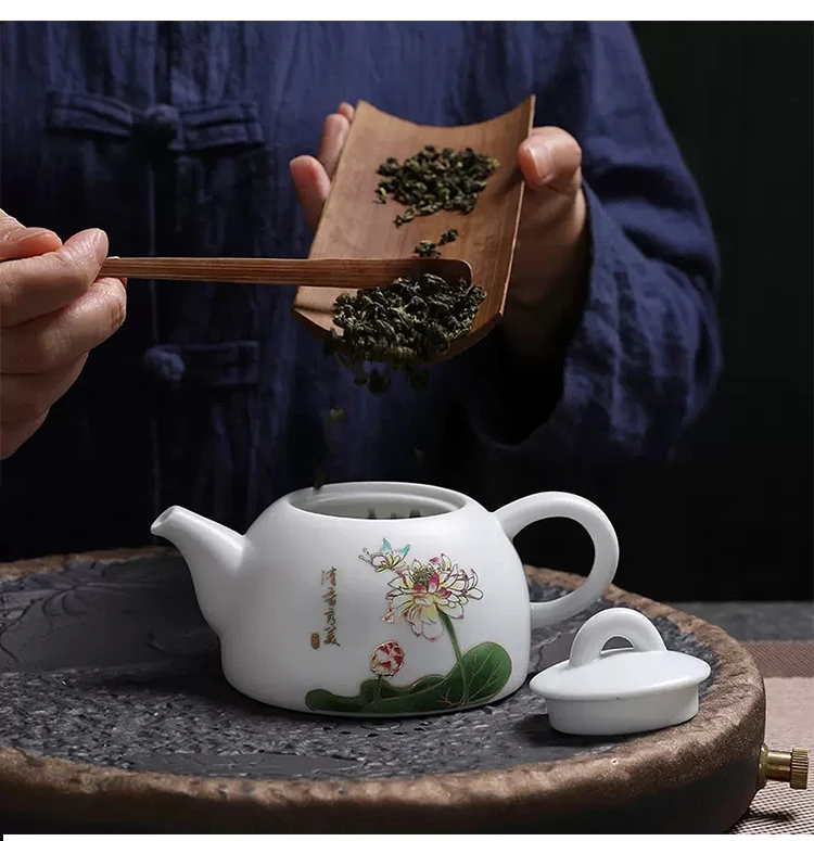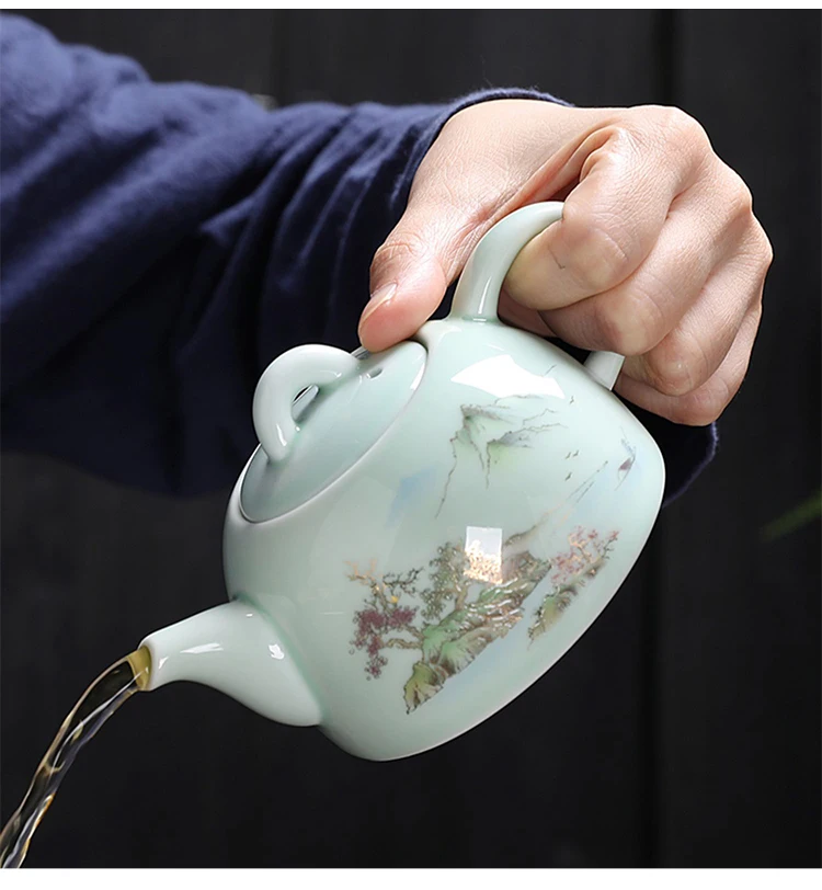 Celadon Tea Pot Kung Fu TeaSet Accessories Ceramic Handmade White Porcelain Teapot Chinese Tea Ceremony Oolong Tea Filter Kettle