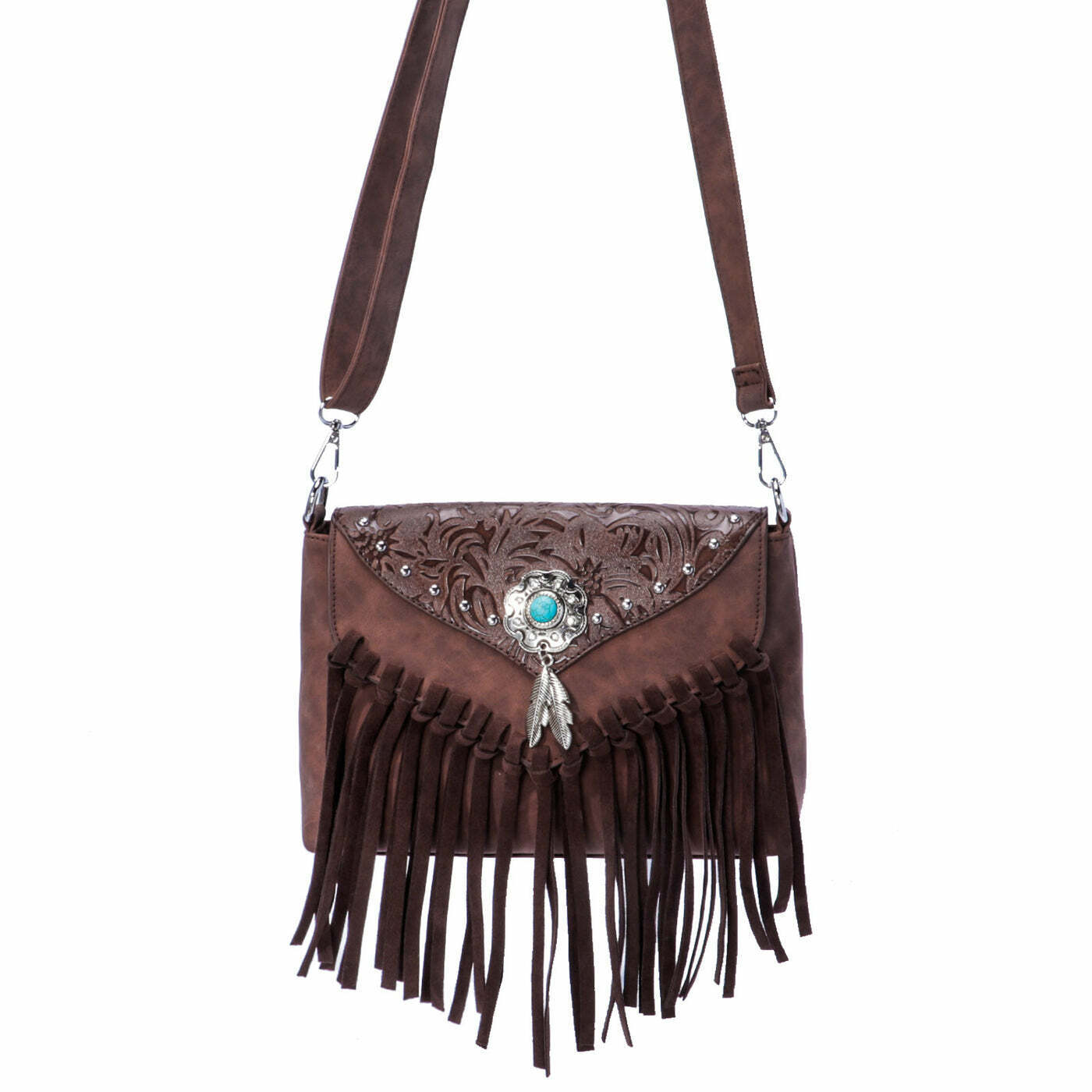 Celela Turquoise Fringe Studded Women Crossbody shoulder Bag Handbag Purse