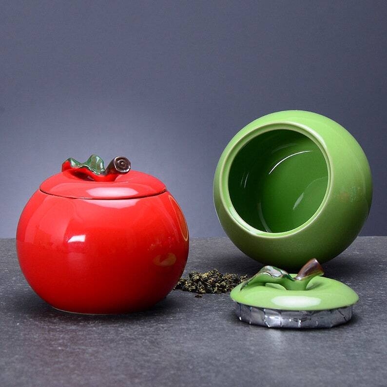 The origin of this tea canister : apple in the meaning of peace, this is the original mind of the artist design, kitchen storage box/birthday gift/tea storage/candy storage box is a good choice