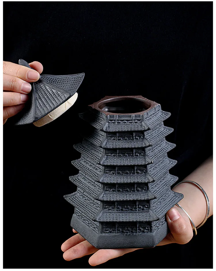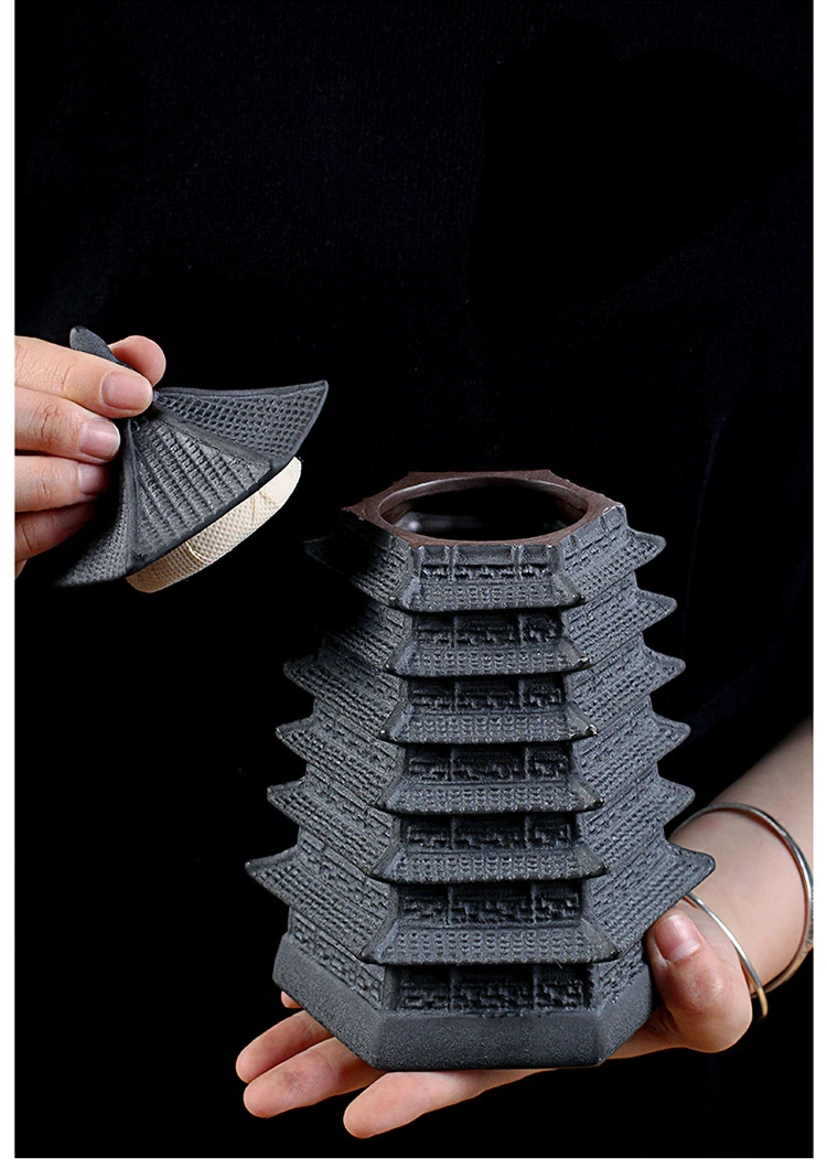 Ceramic Purple Sand Tea Caddy, Large and Small Sealed Storage Box, Pu'er Tea Black Tea Green Tea Pagoda Tea Can Ornaments