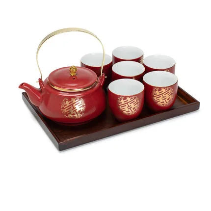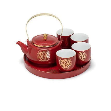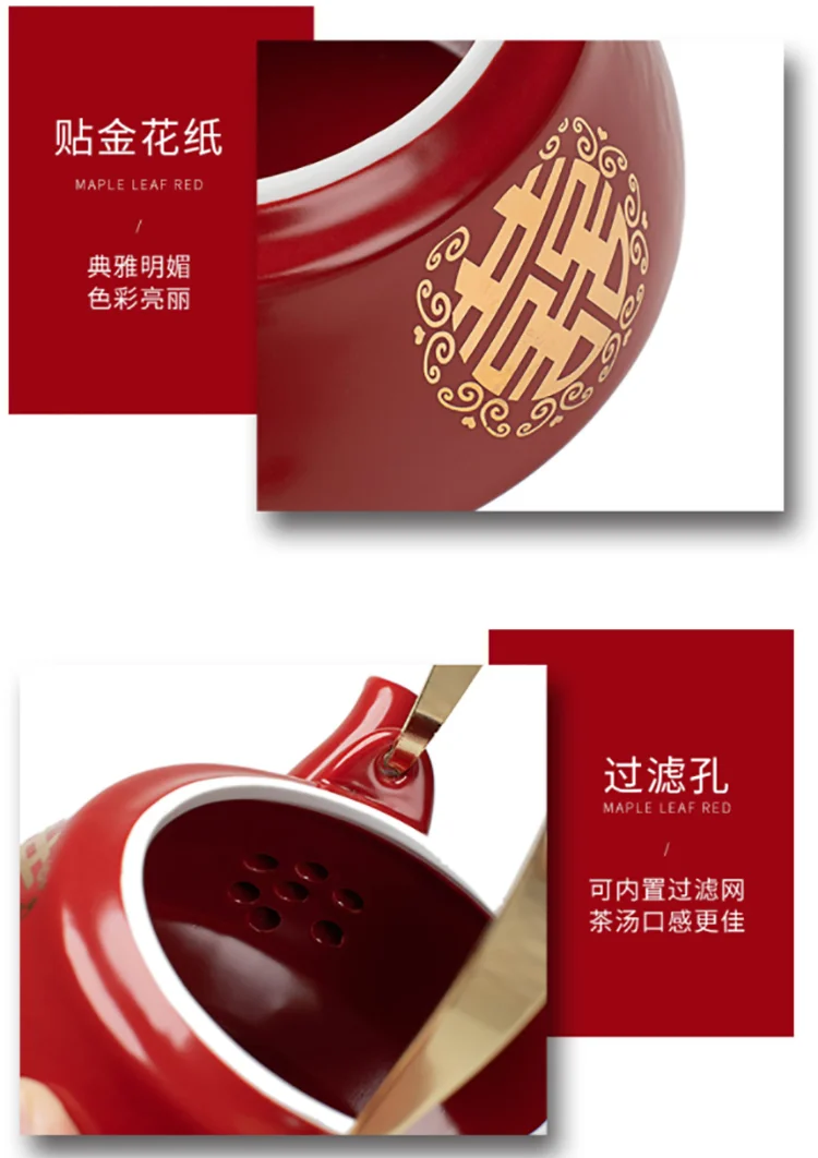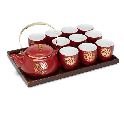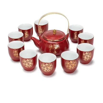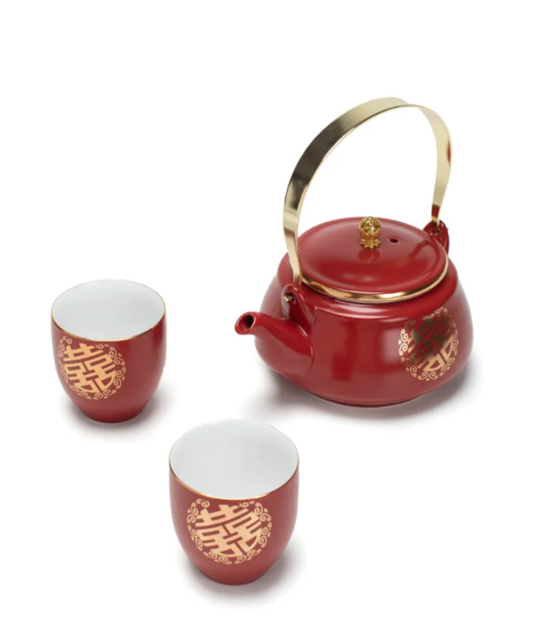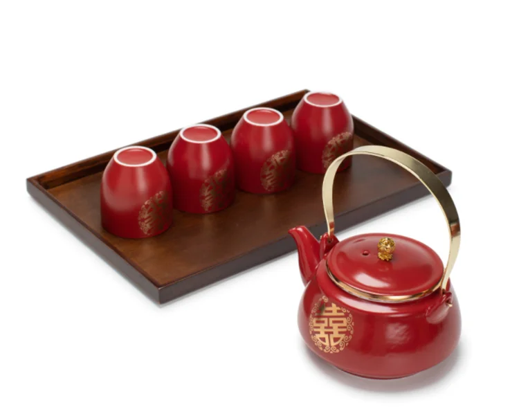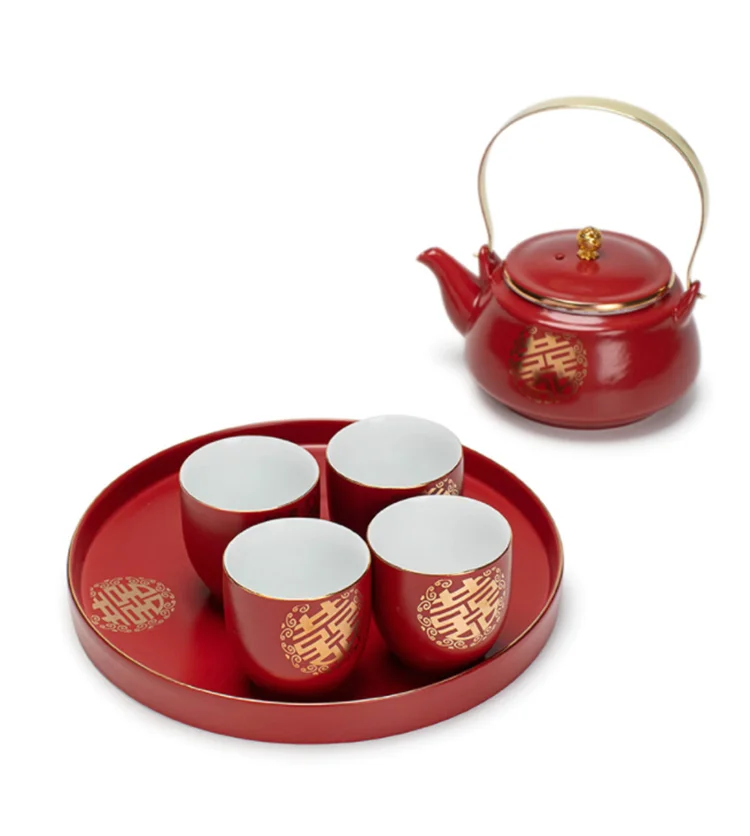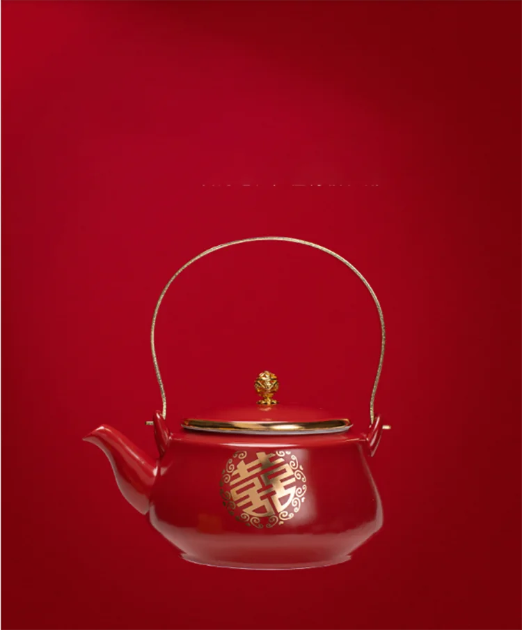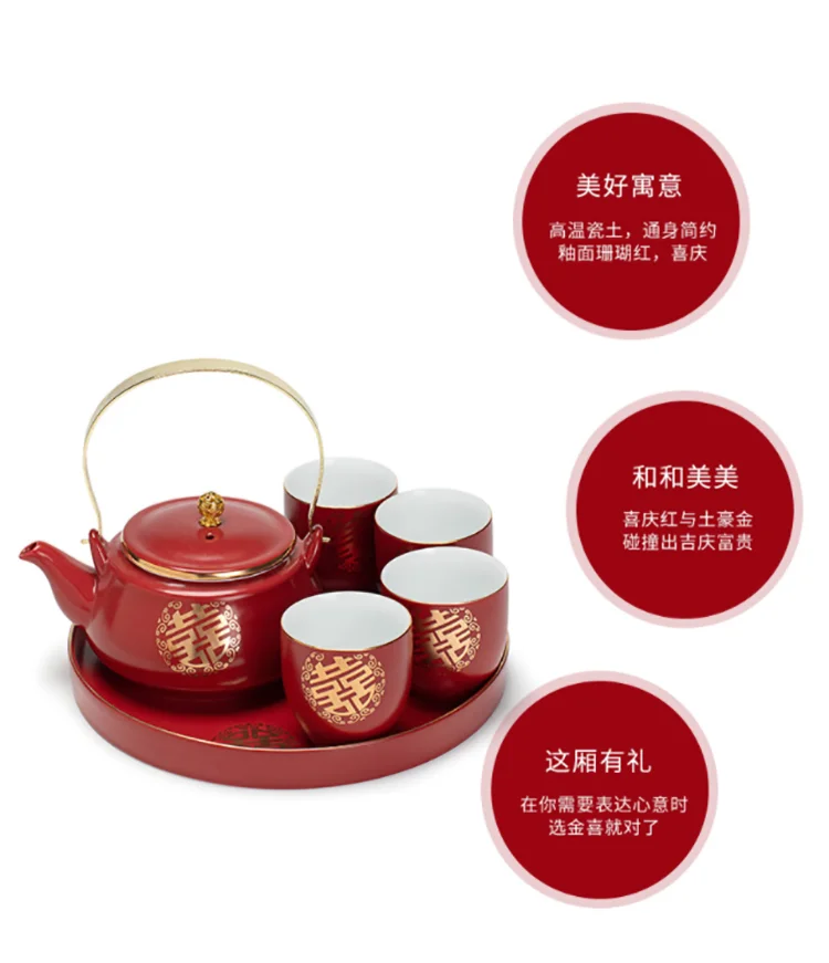 Ceramic Red Wedding Tea Set Newlywed Souvenir Gift Porcelain Chinese Teaware Kettle Teapot Cup Luxury Gift for Best Friend