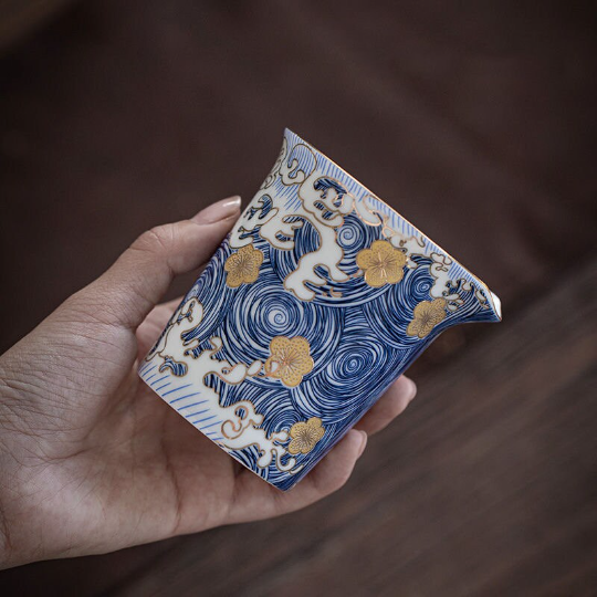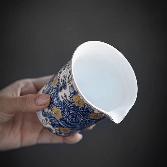 Ceramic Tea Pitchers Blue Gold Flower Chinese Kung Fu Tea Accessory