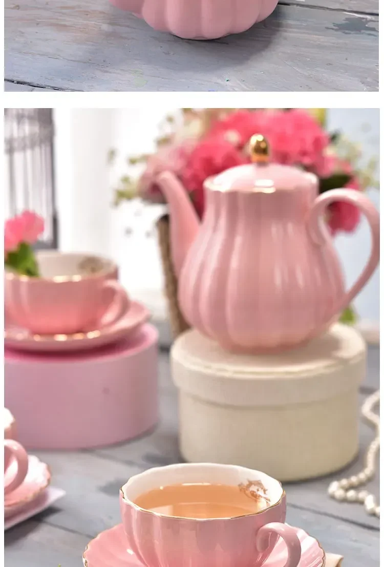 Product name:Ceramic Teapot Pumpkin Shape Hand Painted Gold Bone China Teapot With Tea Strainer Elegant Tea Pot Set 1L