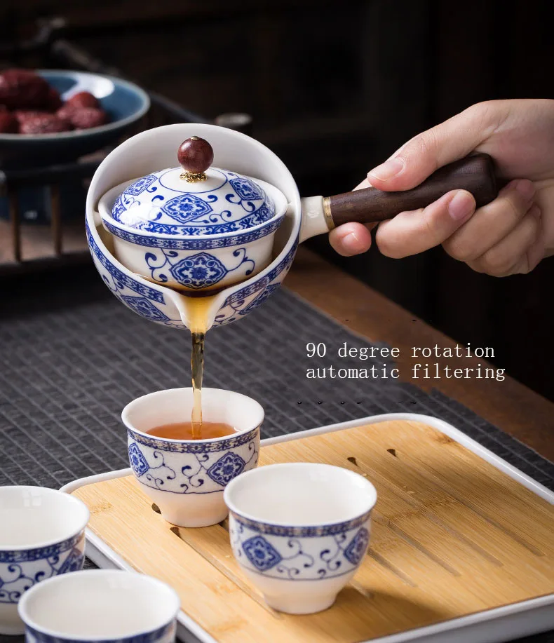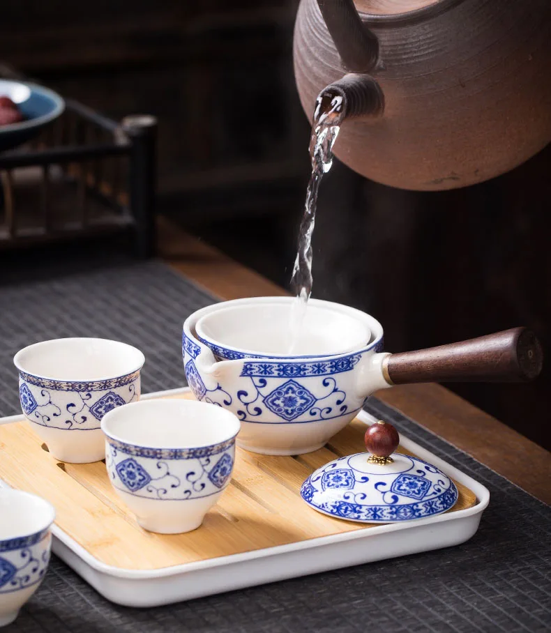 Ceramic Teapot with Wooden Side-handle Pot Household Kung Fu Pottery Teaware