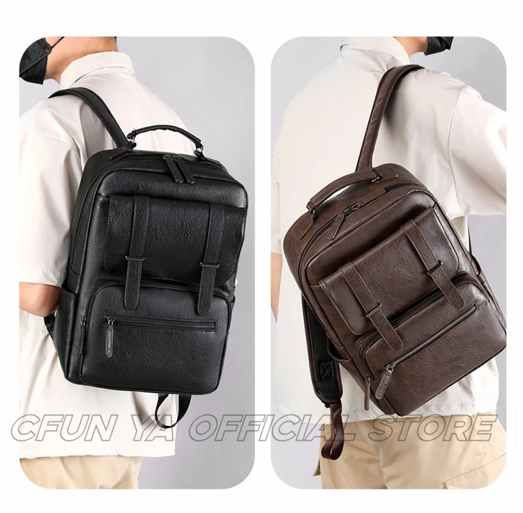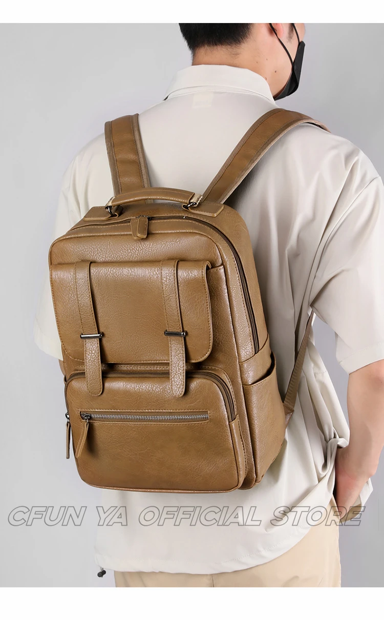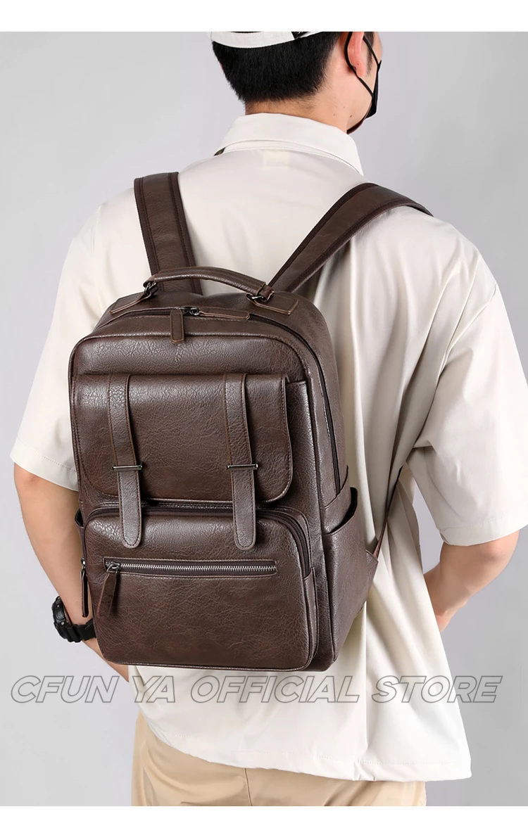 CFUN YA Fashion Causal PU Backpack For Men Multifunction 15.6" Laptop Bag Pack Teen Student Bookbag Travel Bagpack Rucksack New