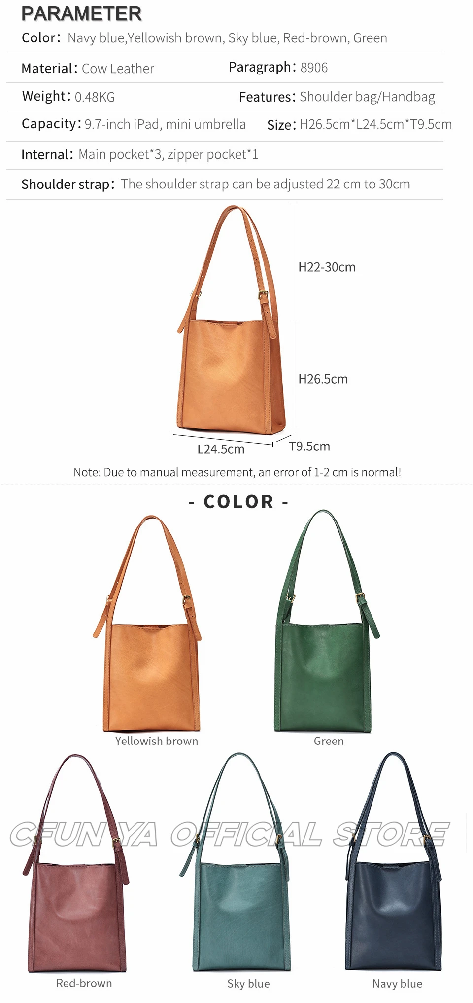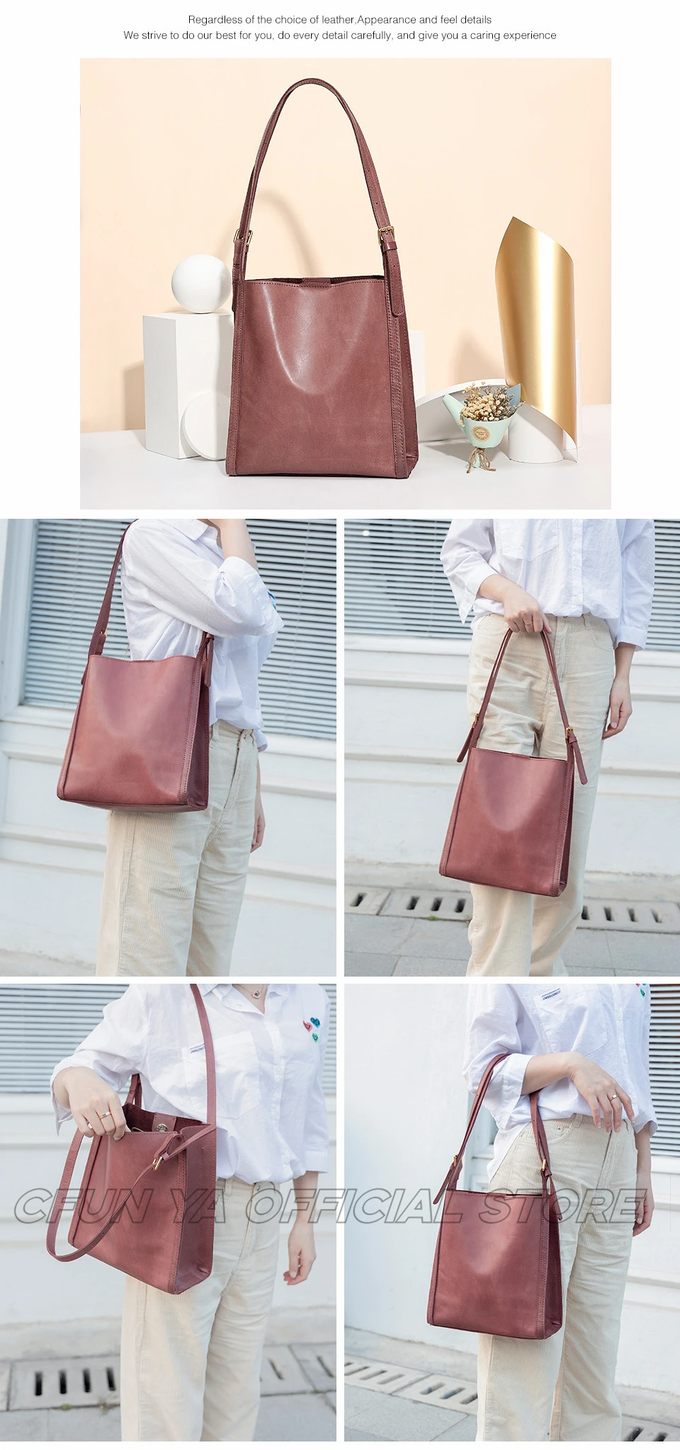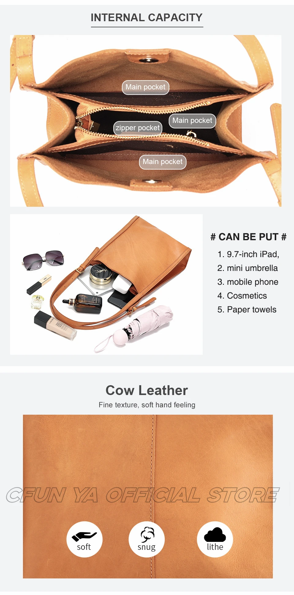 CFUN YA Fashion Trend Luxury Women's Handbag Genuine Leather Tote Bag Large Capacity Female Messenger Shoulder Bags Bolsa 2024