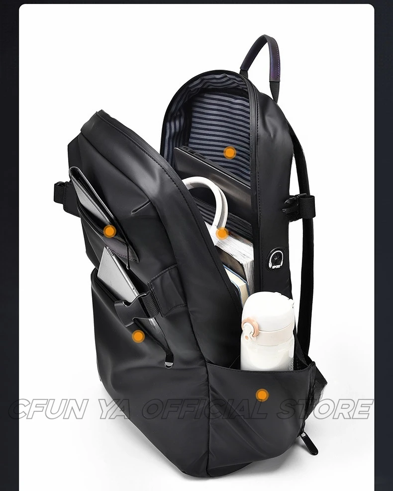 CFUN YA Luxury Causal Backpack With Earphone Port Waterproof Women Men 15.6 Laptop Backpack Travel Rucksack Schoolbag Student