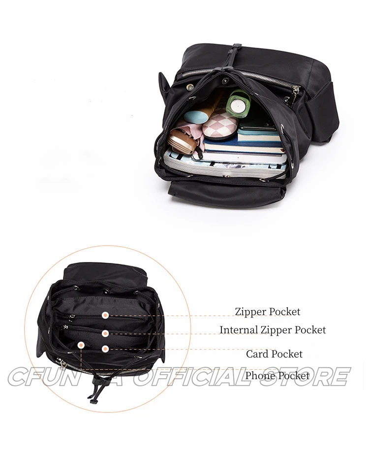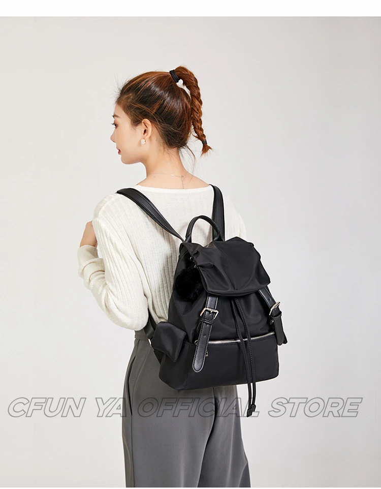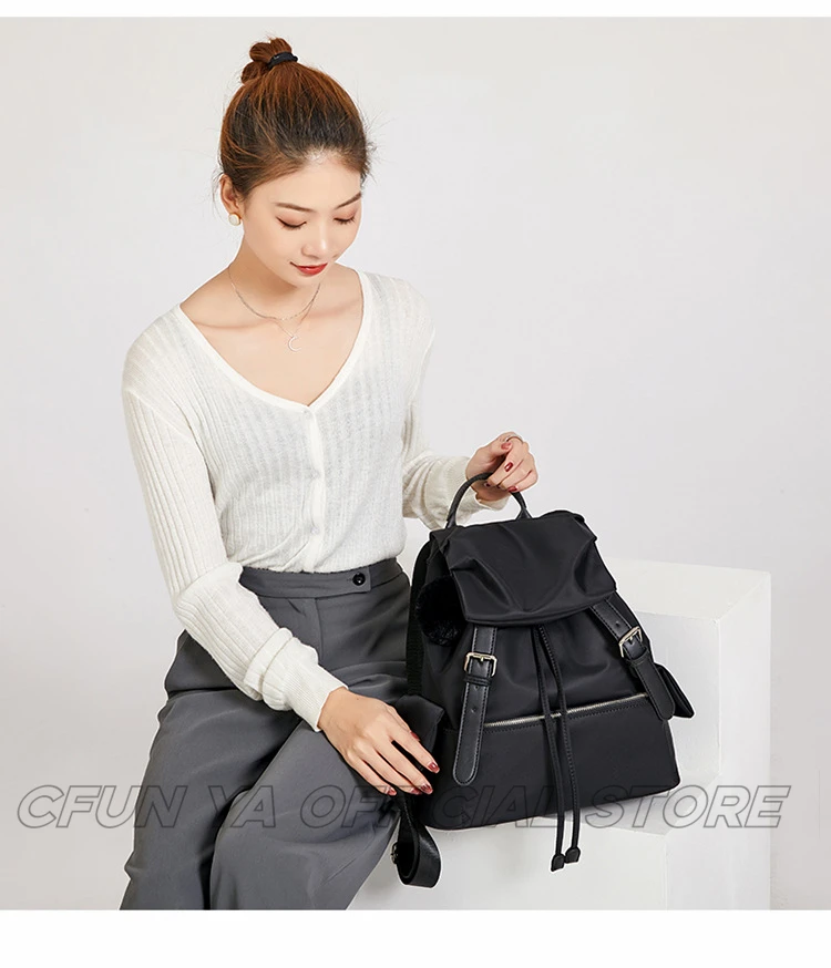 CFUN YA Fashion Trend Black Backpack Women Korean Female Shoulder Bag Multifunction Ladies Rucksack Travel Bagpack Schoolbag Girls