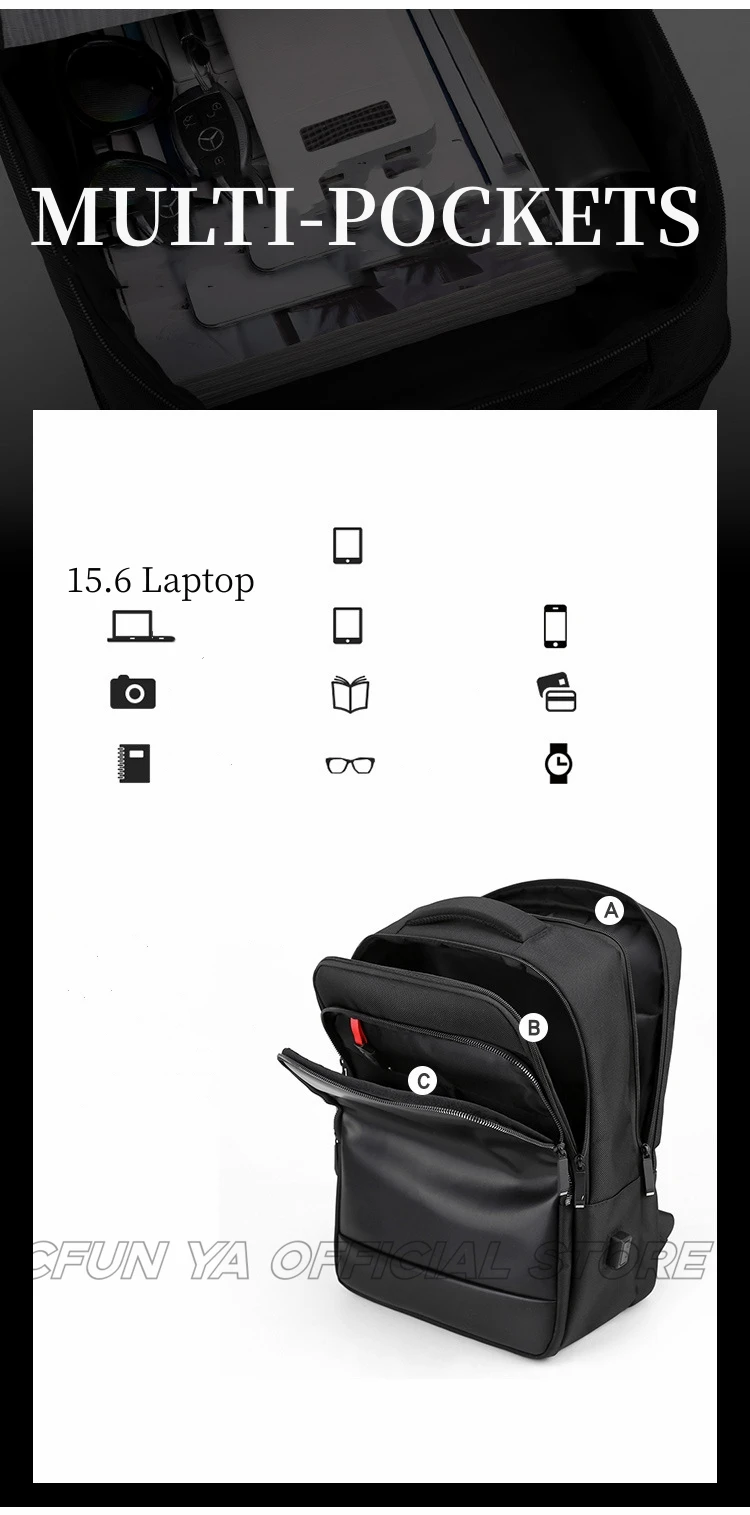 CFUN YA New Fashion Trend Backpack Men Black Business Bagpack 16 Inch Laptop Backpacking Travel Rucksack Male Students Schoolbag