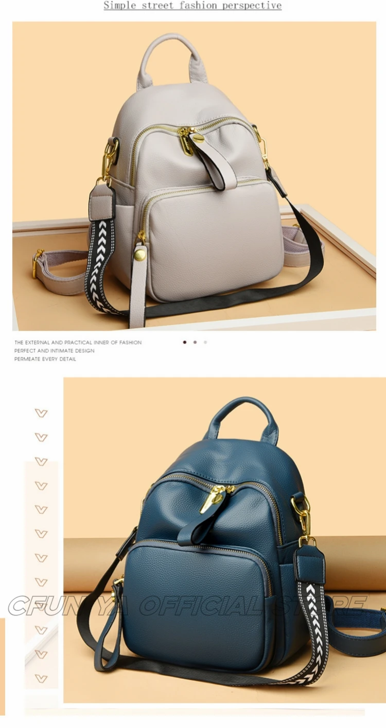 CFUN YA New Trend Luxury Real Leather Backpack Women Multifunction Female Shoulder Cross Bag Lady Handbag Students Schoolbag