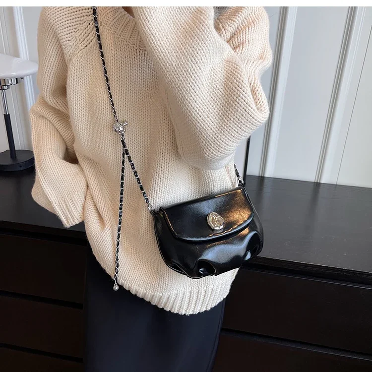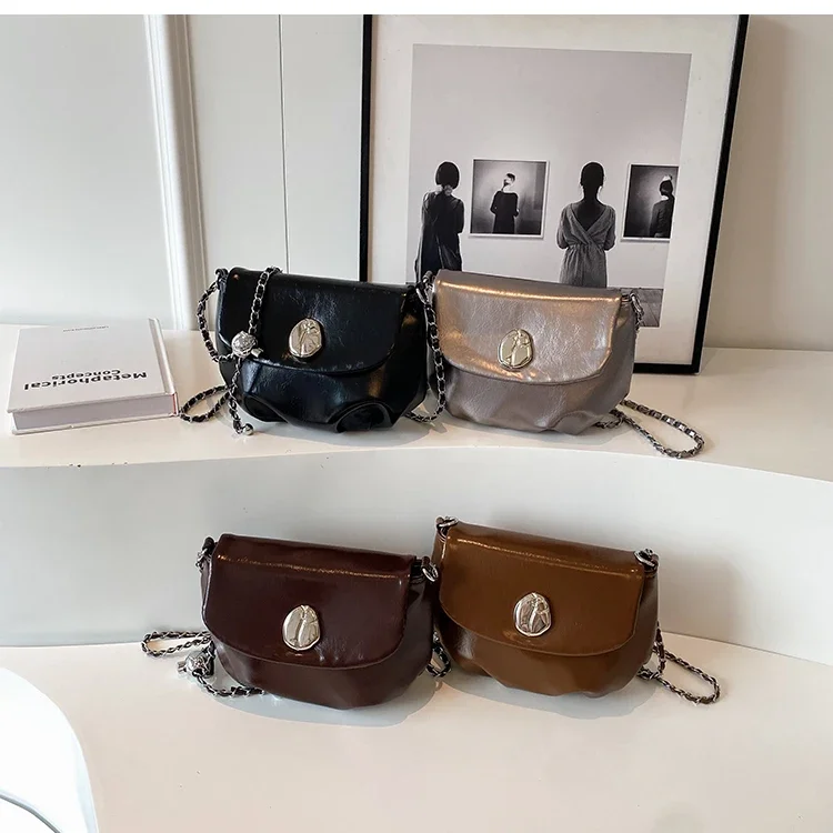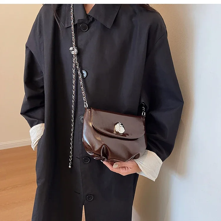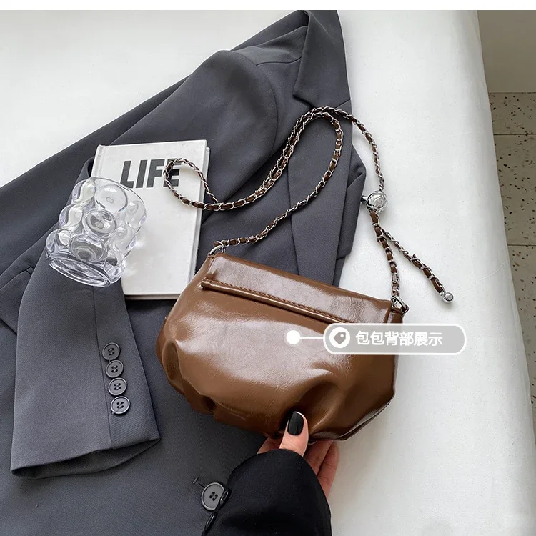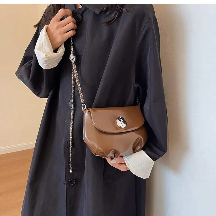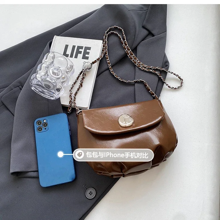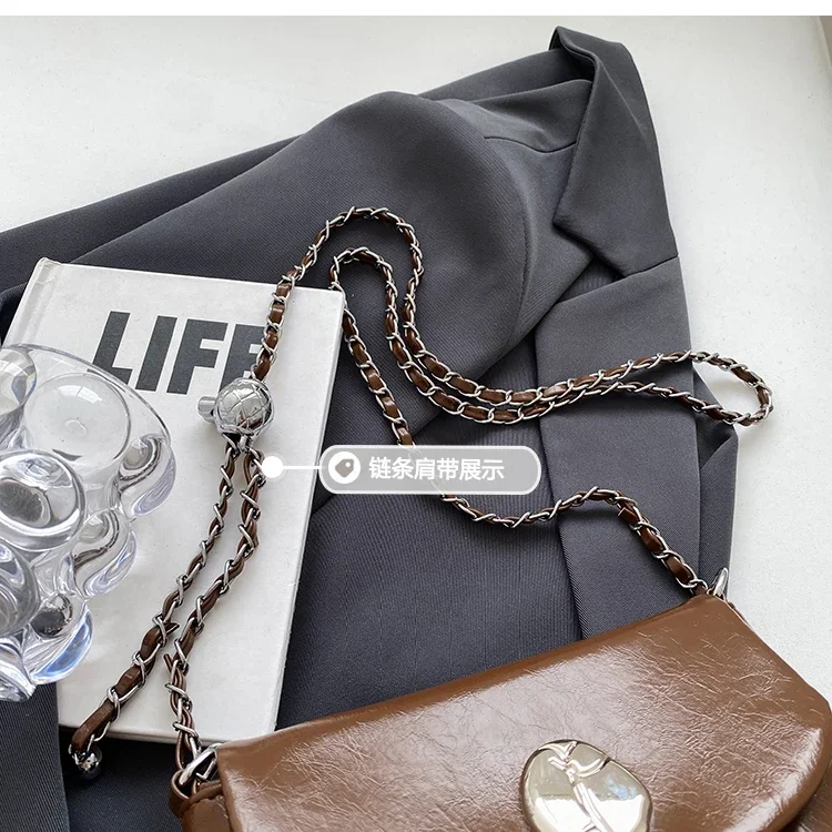 Chain Crossbody Small Square Bag High-end Retro Brown Shoulder Bag For Women's 2024 New Versatile Small Mobile Phone Bag