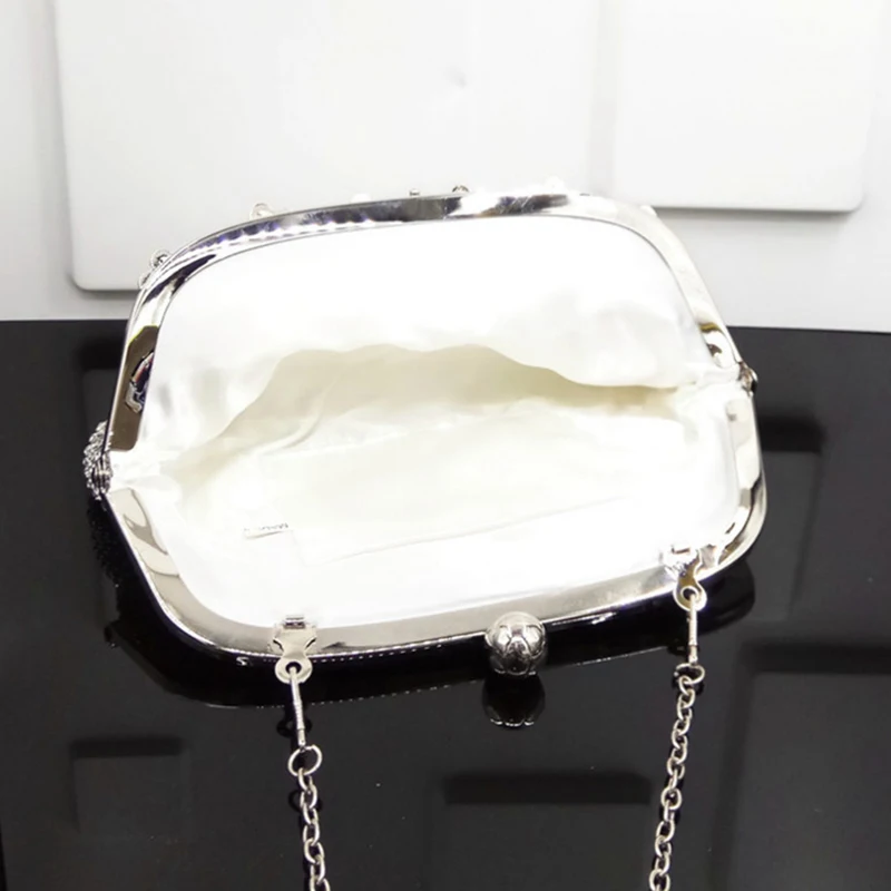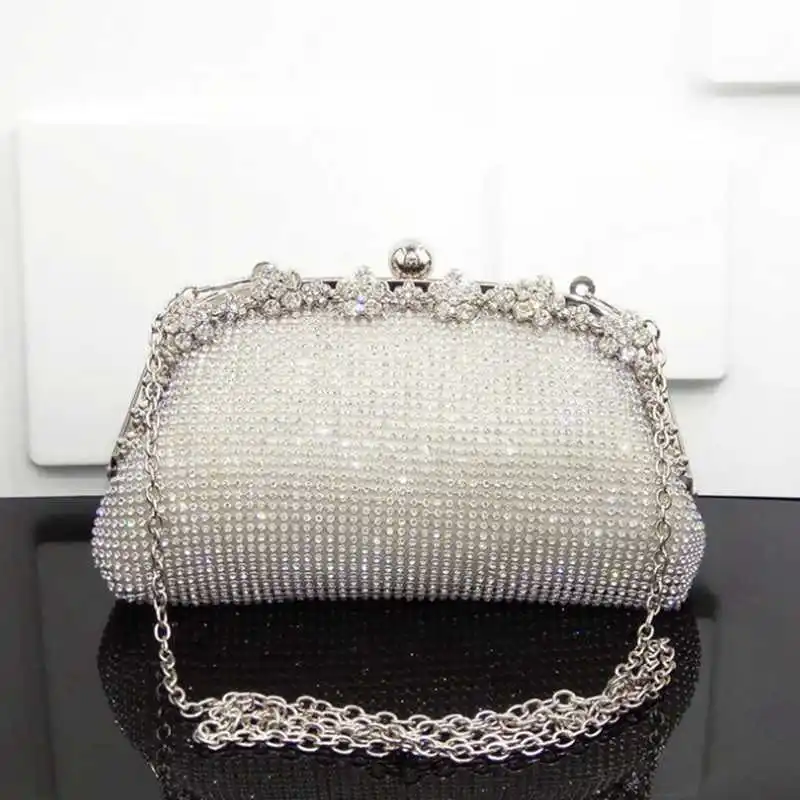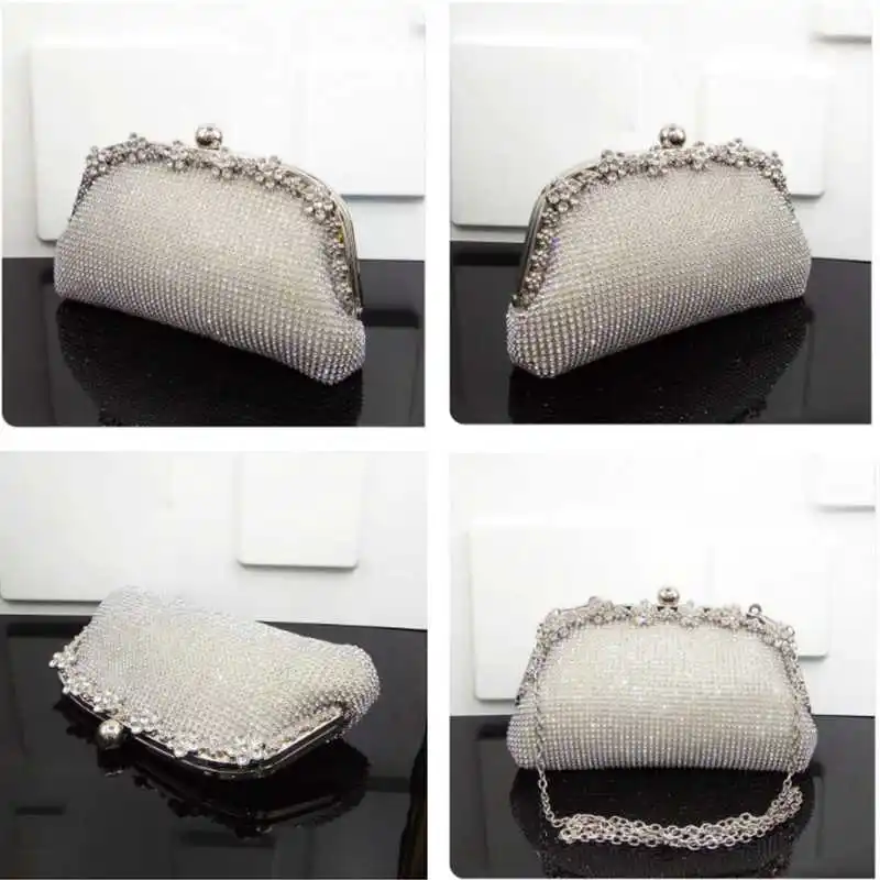 Interior:Interior Compartment,Cell Phone Pocket Model Number:BF651 Style:Fashion Decoration:Diamonds,Lock,Chains Gender:Women Handbags Type:Evening Bags Hardness:Hard Closure Type:Hasp Pattern Type:Solid Number of Handles/Straps:Single Occasion:Versatile colour:Silver Material:Rhinestone+polyester size:22cm*13cm*3cm Package Contents: 1 * bag Only the above package content, other products are not included. Note: Light shooting and different displays may cause the color of the item in the picture a little different from the real thing. The measurement allowed error is +/- 1-3cm.