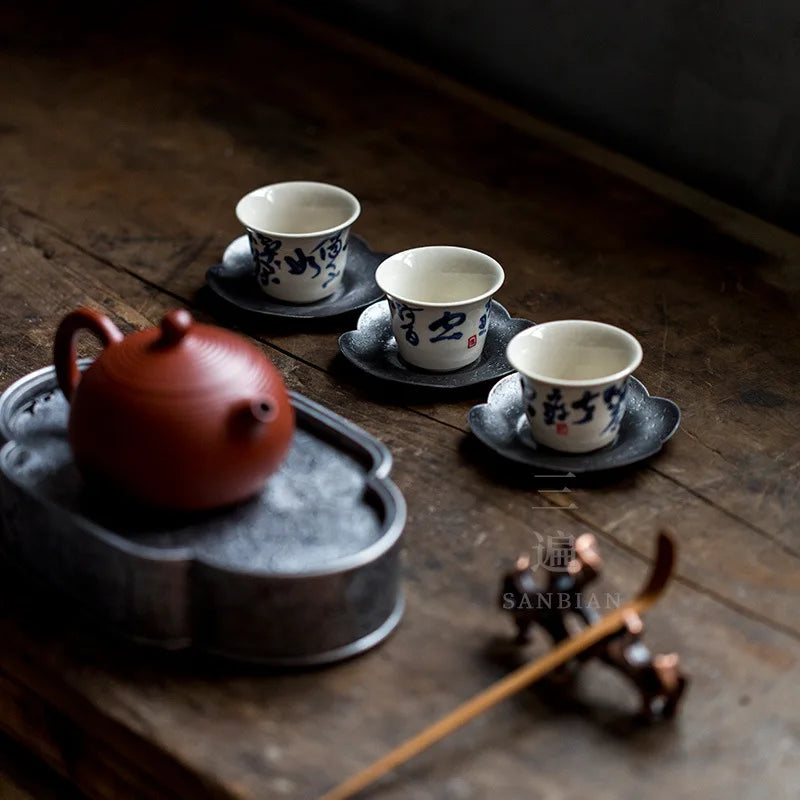 Chaozhou Kombucha Props Pure Tin Old Pot Tray Retro Pot Tray Draining Teapot Platform Japanese round Jianshui Tea Boat