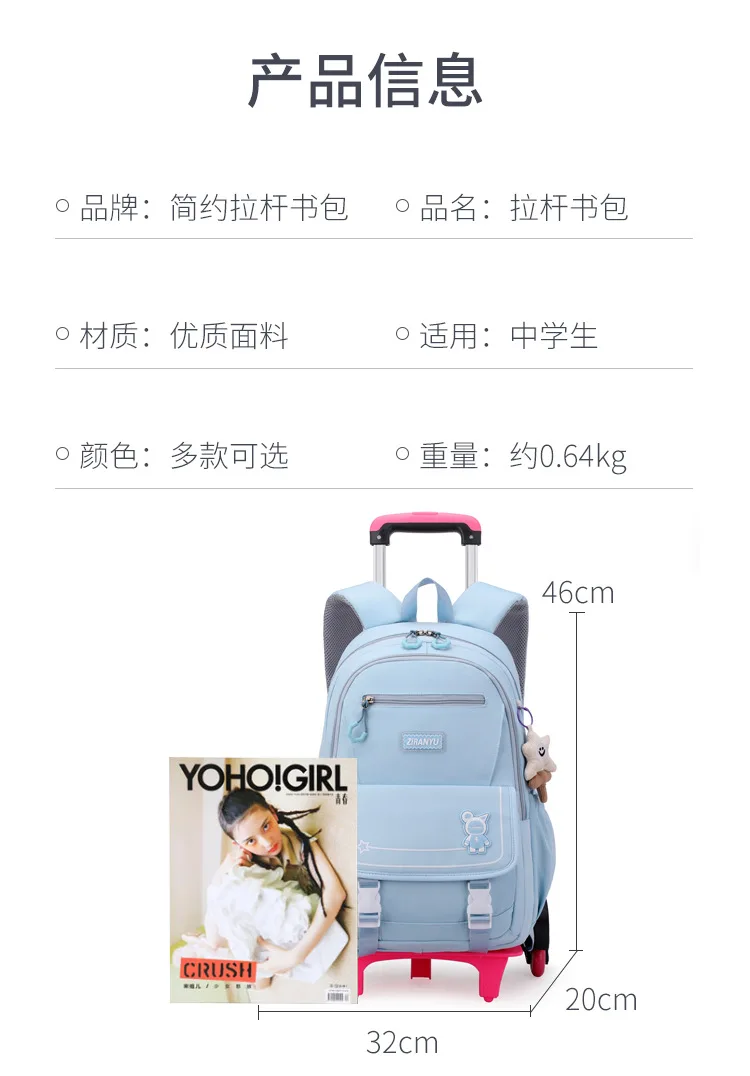 Children School Backpack with Wheels Rolling School Bag For Girls wheeled backpack Trolley Luggage Bag Students Backpack