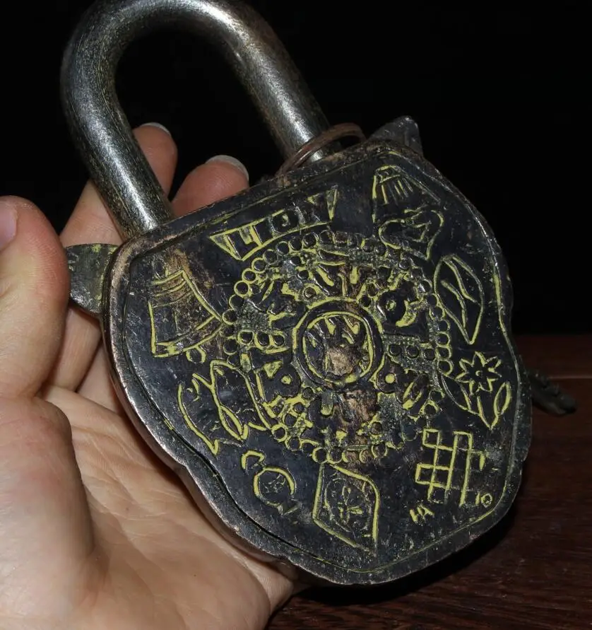 China archaize Brass lion head lock crafts statue