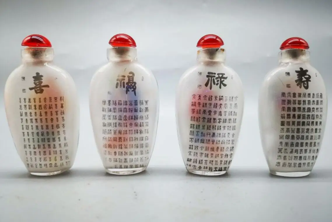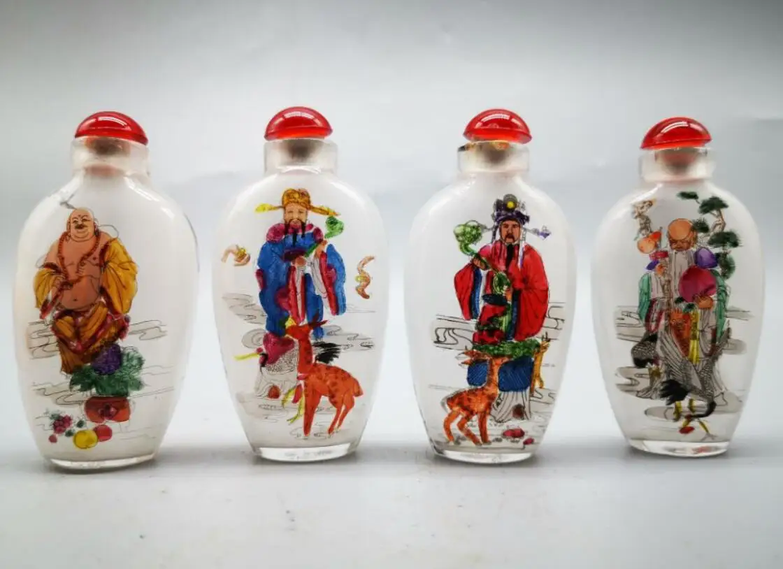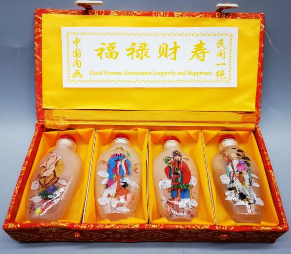 China archaize Coloured glaze Fu lu shou cai Snuff bottles crafts statue A set