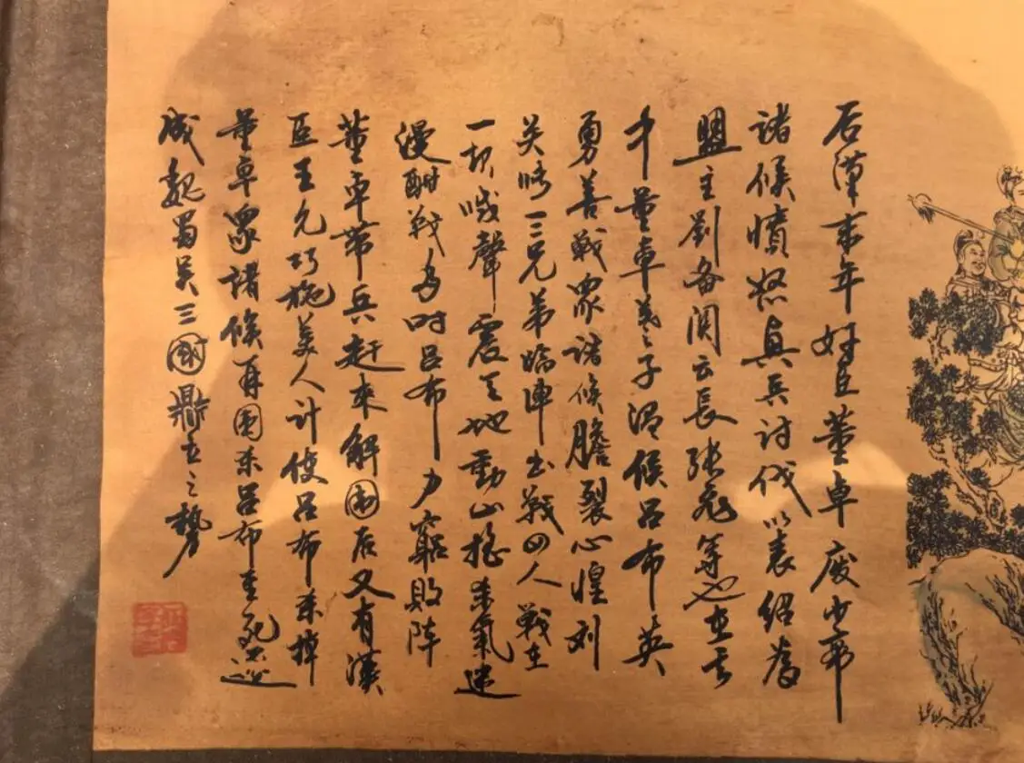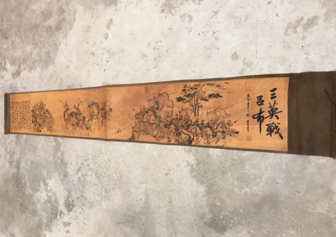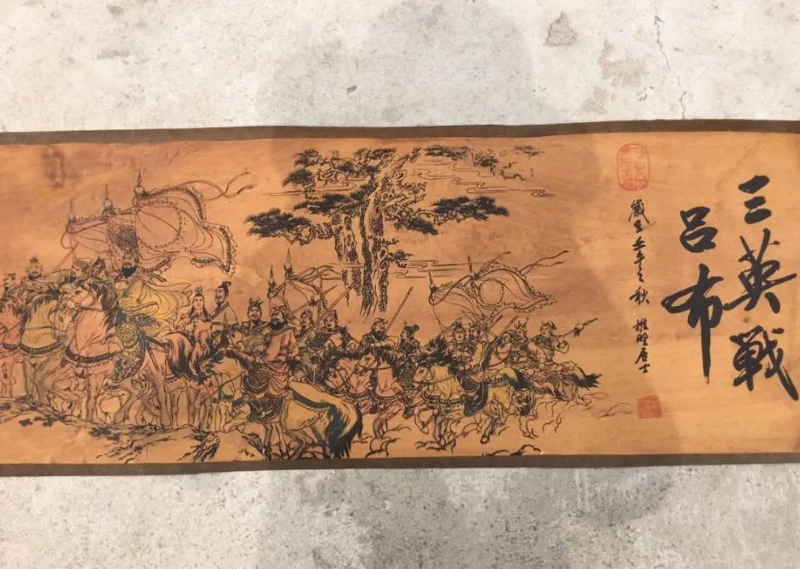 China archaize Long curly Three generals War Lu Bu Calligraphy painting