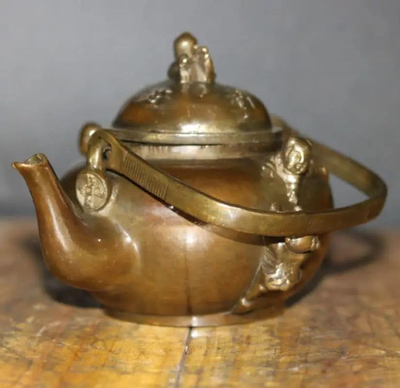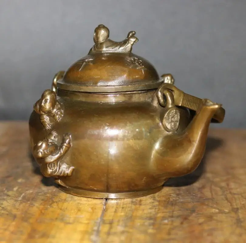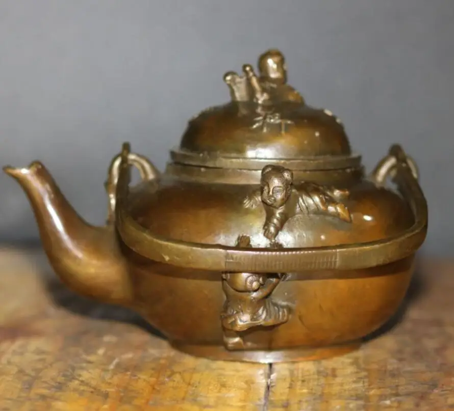 China brass archaize five child teapot crafts statue