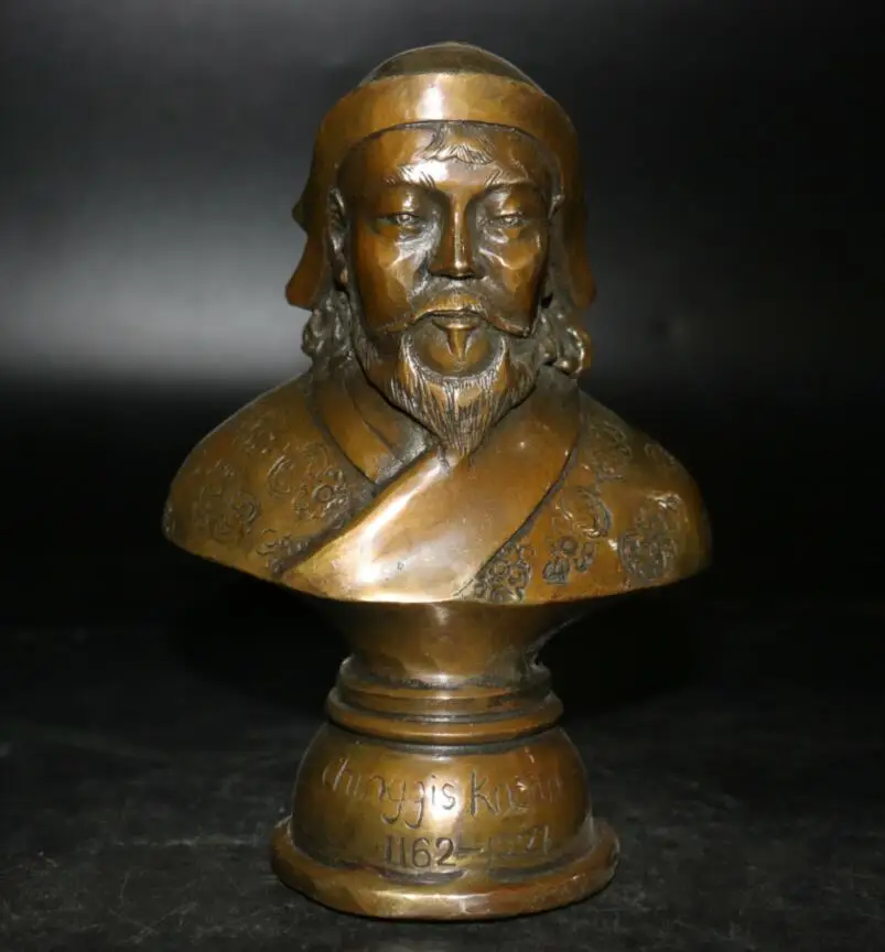 China brass archaize Genghis Khan Head portrait crafts statue