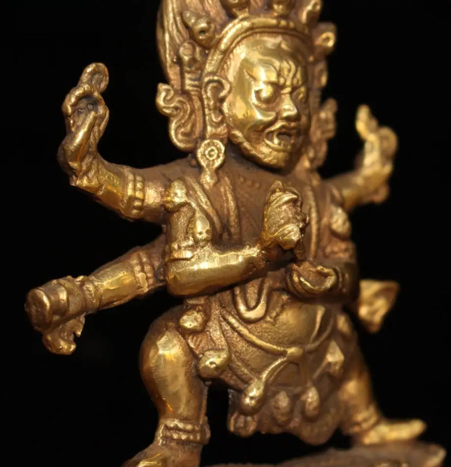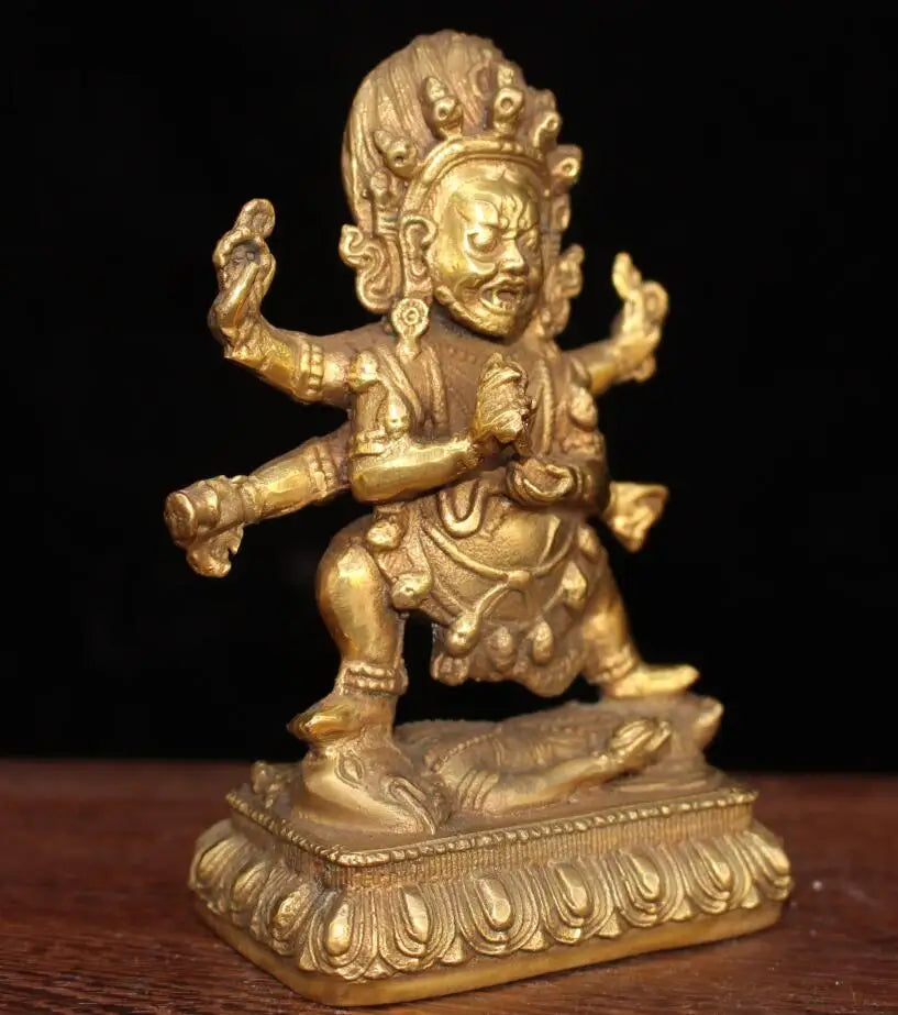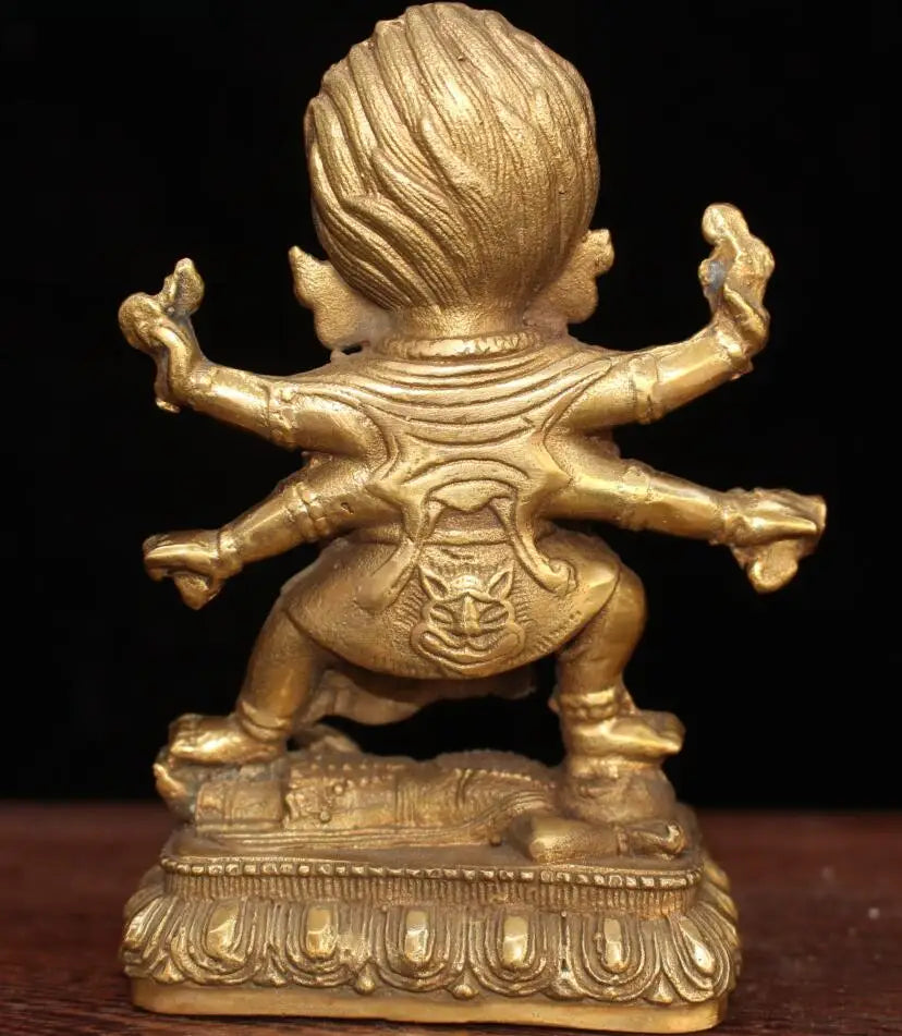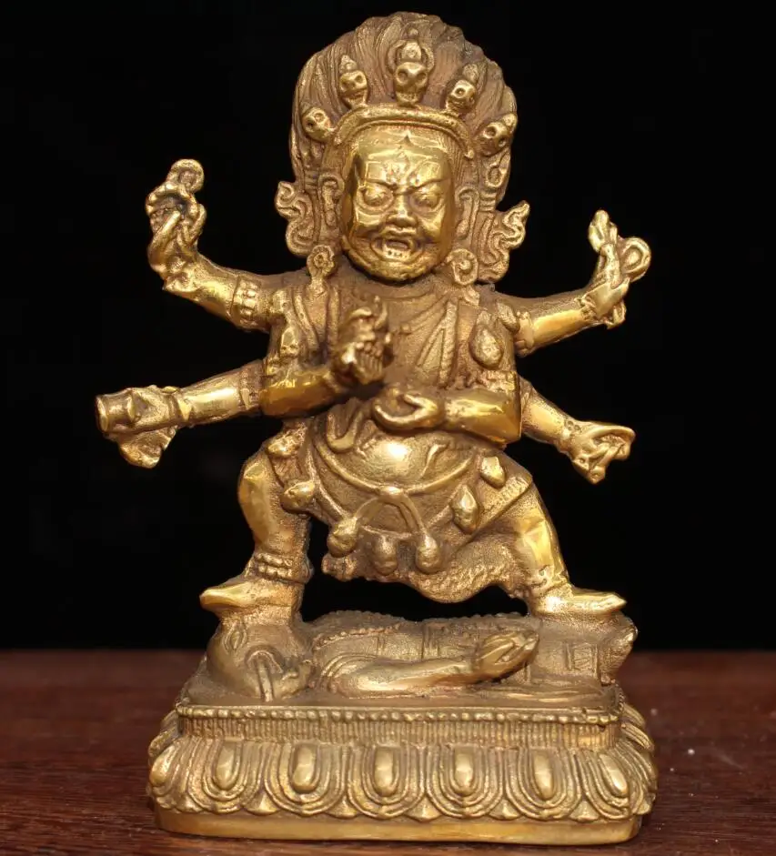 China brass archaize Tibetan four arm Buddha crafts statue