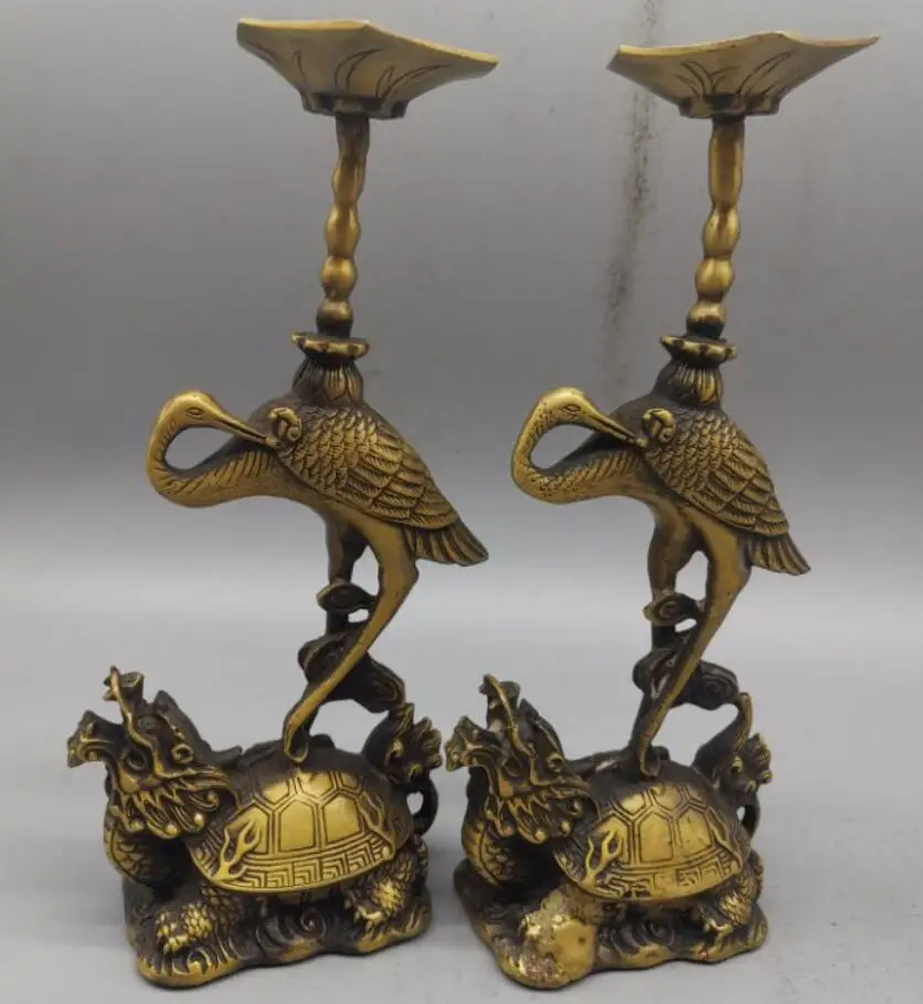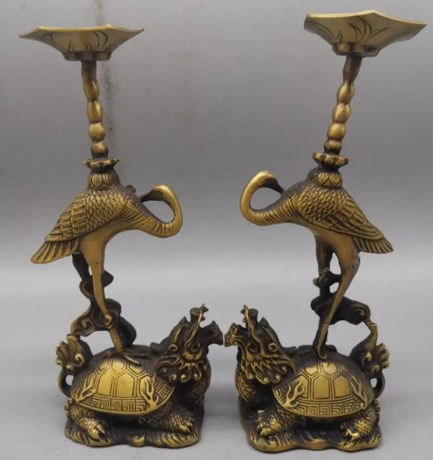 China brass dragon turtle crane Candle Holders crafts statue A pair
