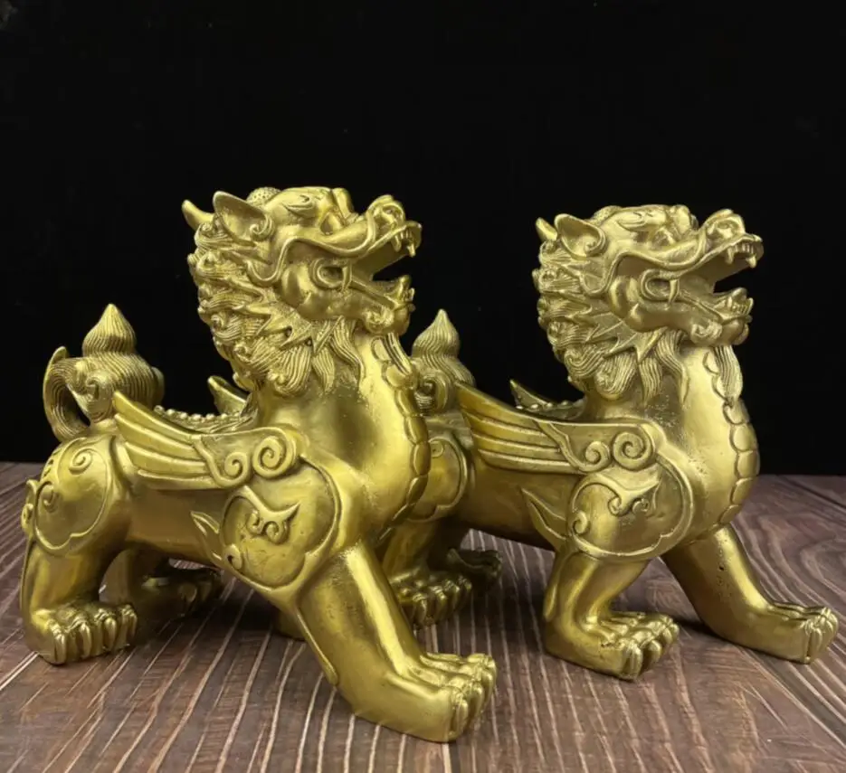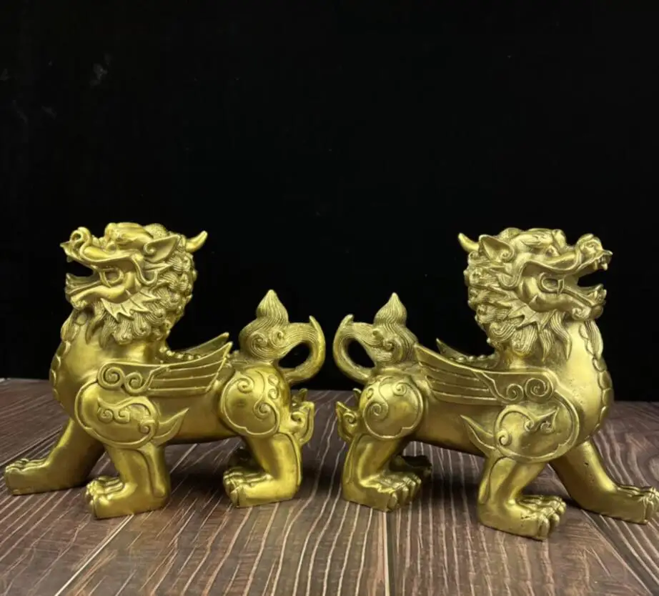 China brass mythical wild animal crafts statue A pair