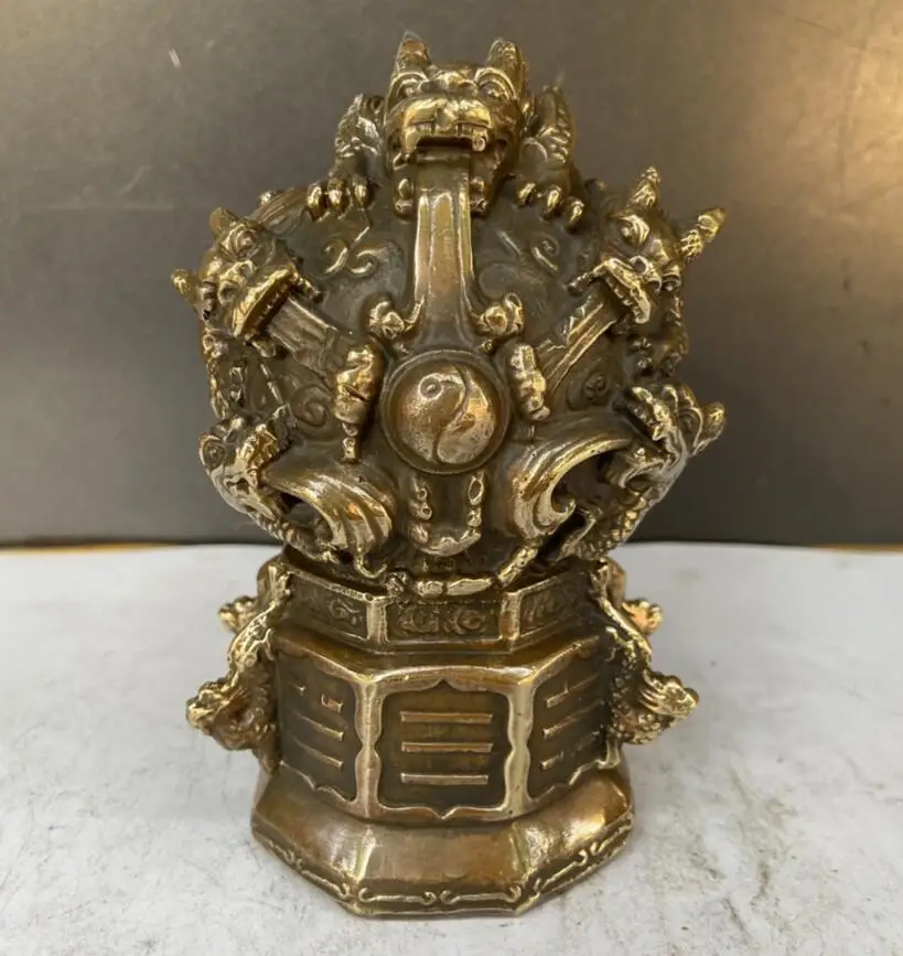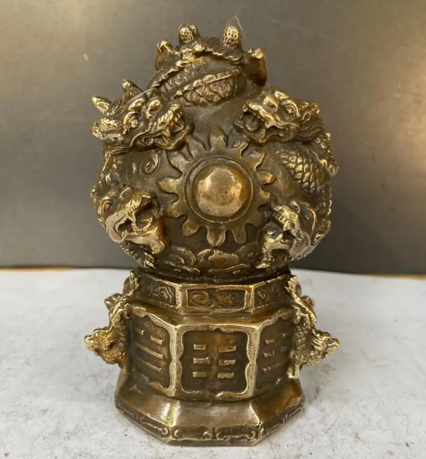 China brass nine dragon play bead crafts statue