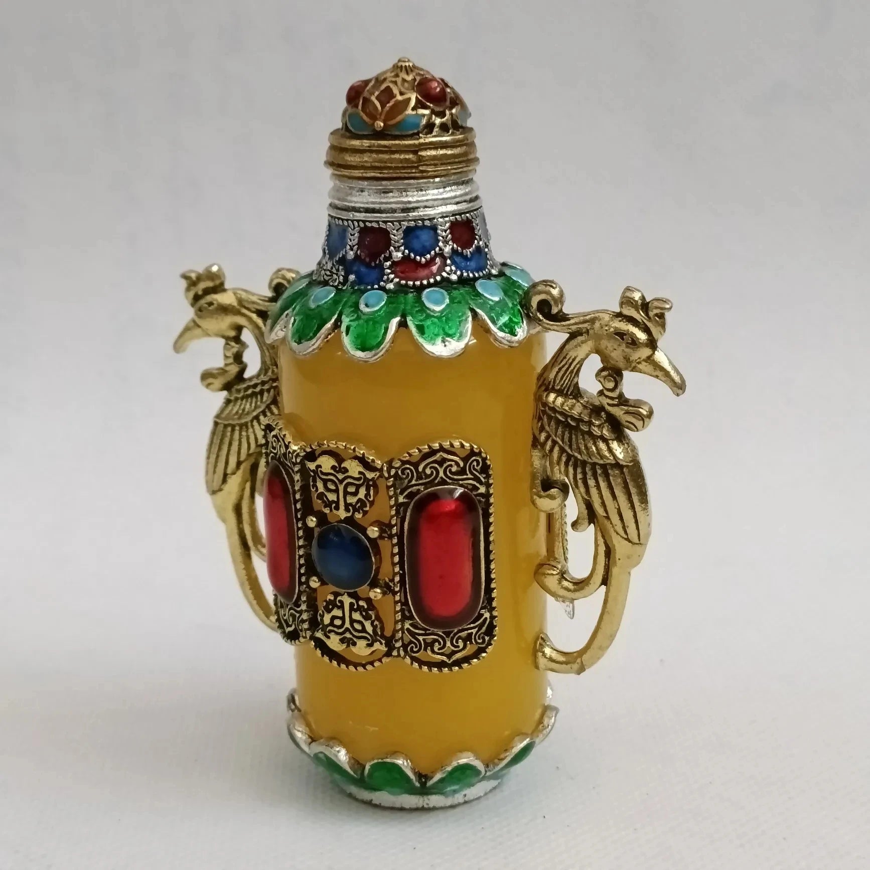 China Elaboration Tibetan Silver Statue Inlay Gems Snuff Bottle Metal Crafts Home Decoration#2