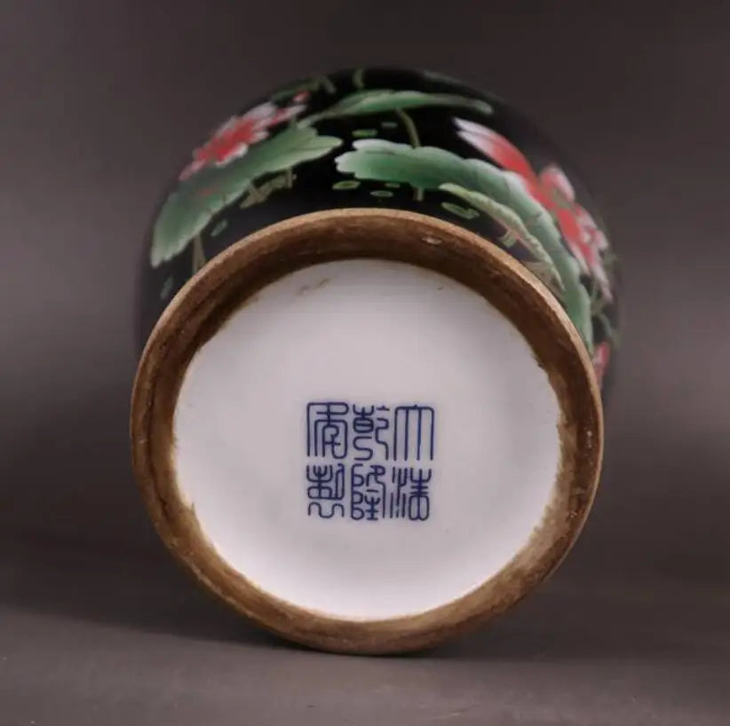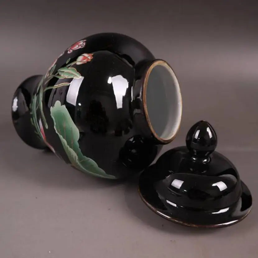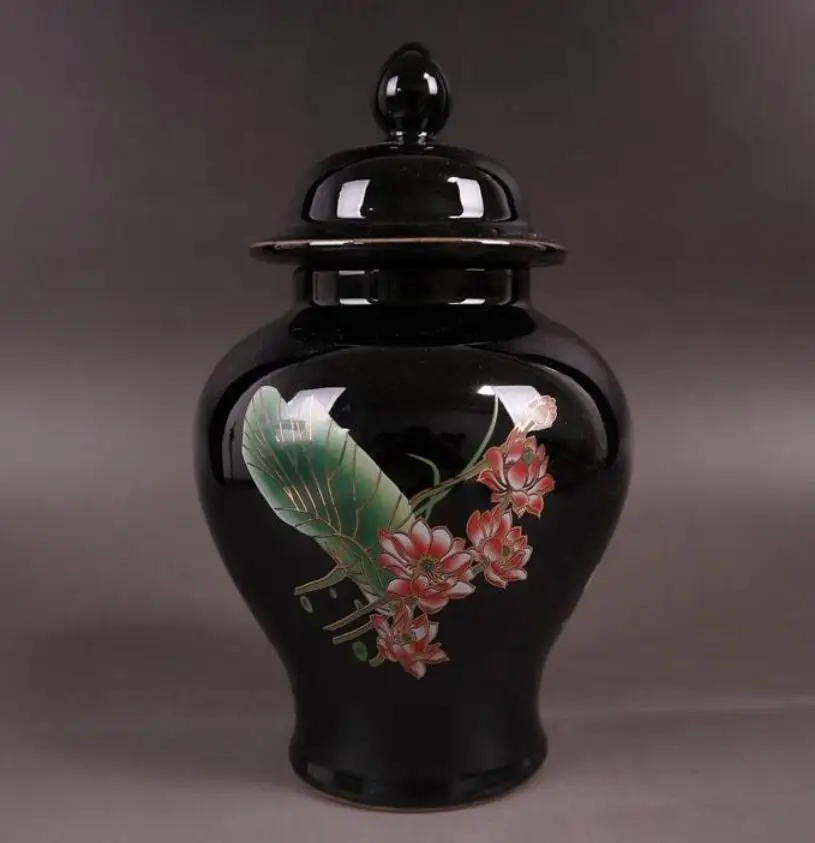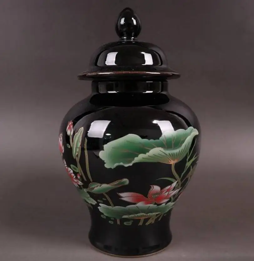 China seiko Black golden glaze ceramic lotus tank crafts statue