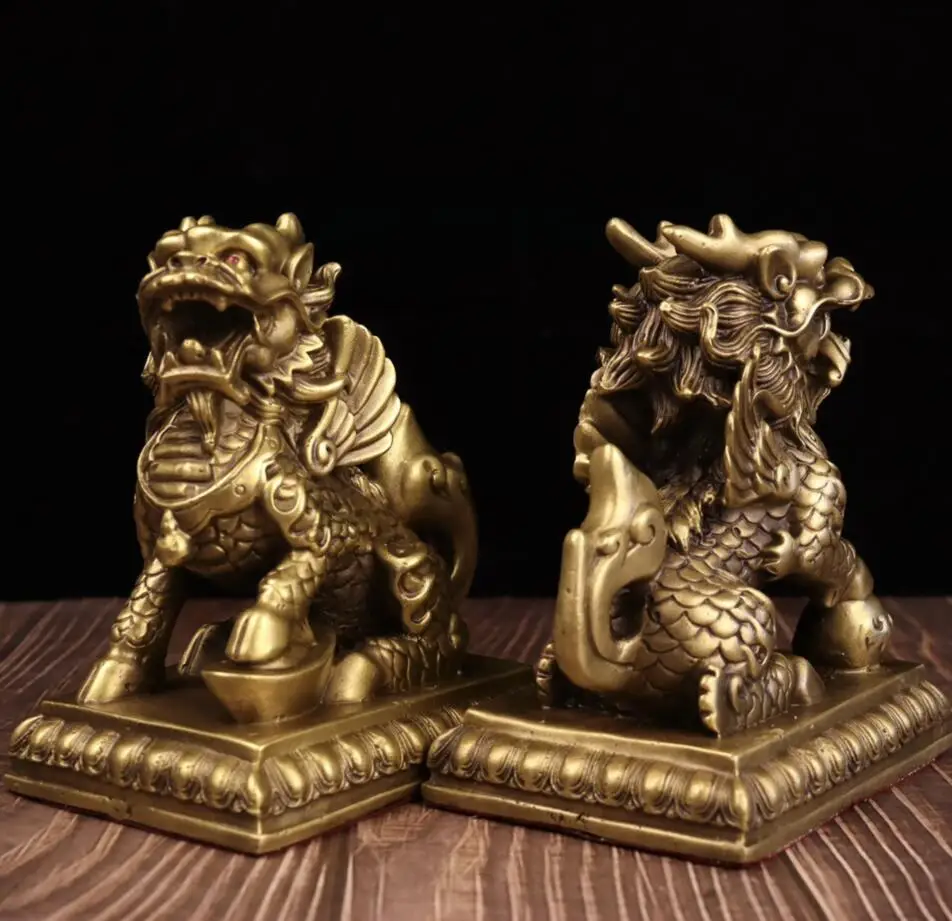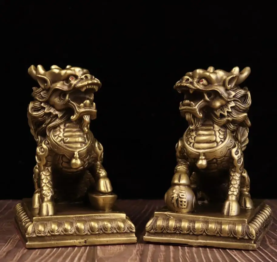 China seiko brass fly Days kirin crafts statue A pair